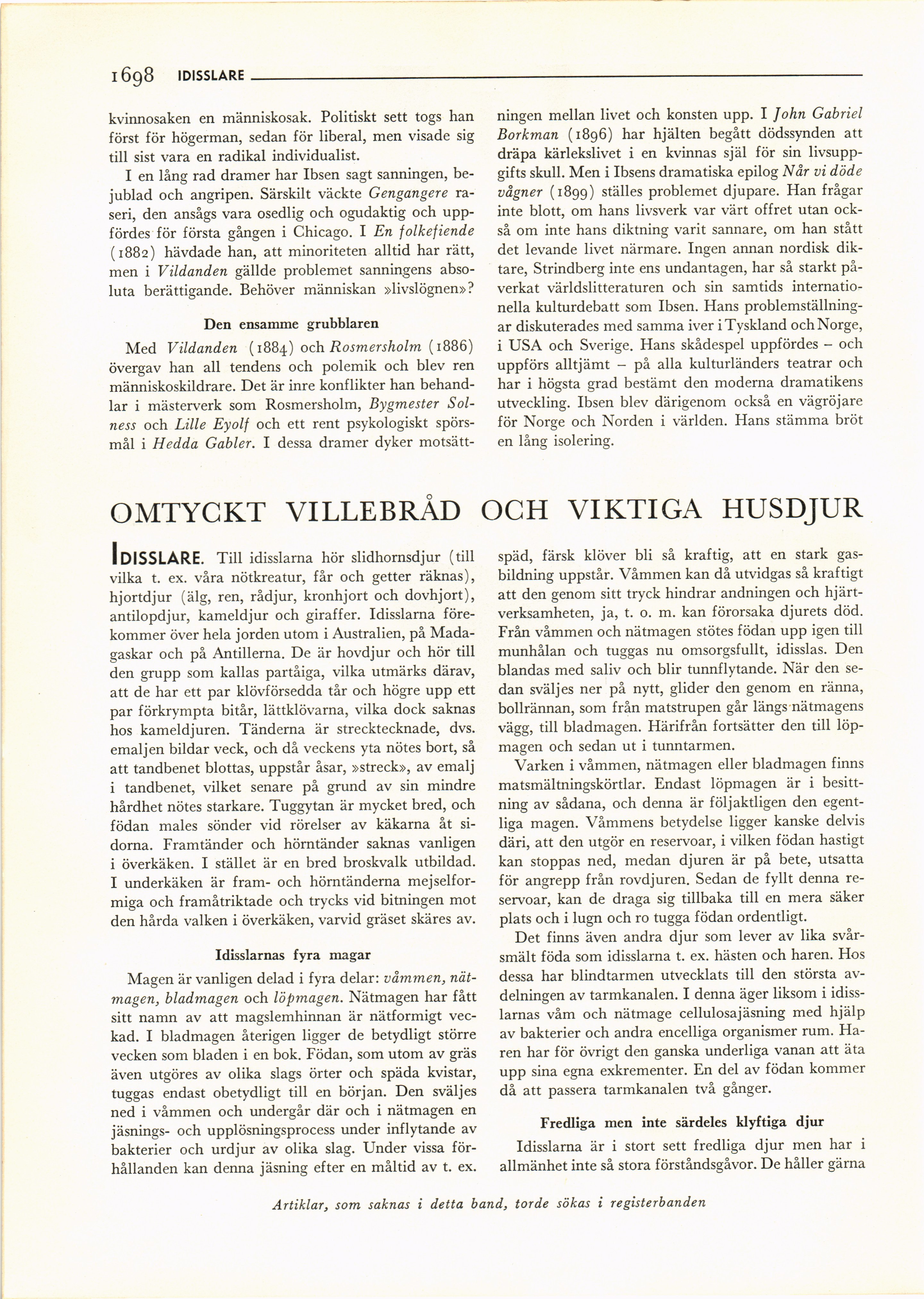 Full resolution (JPEG) - On this page / på denna sida - Ibsen, Henrik — norsk dramatiker med världsrykte - Hans uppgörelse med landsmännen och sig själv - Den ensamme grubblaren - Idisslare — omtyckt villebråd och viktiga husdjur - Idisslarnas fyra magar - Fredliga men inte särdeles klyftiga djur