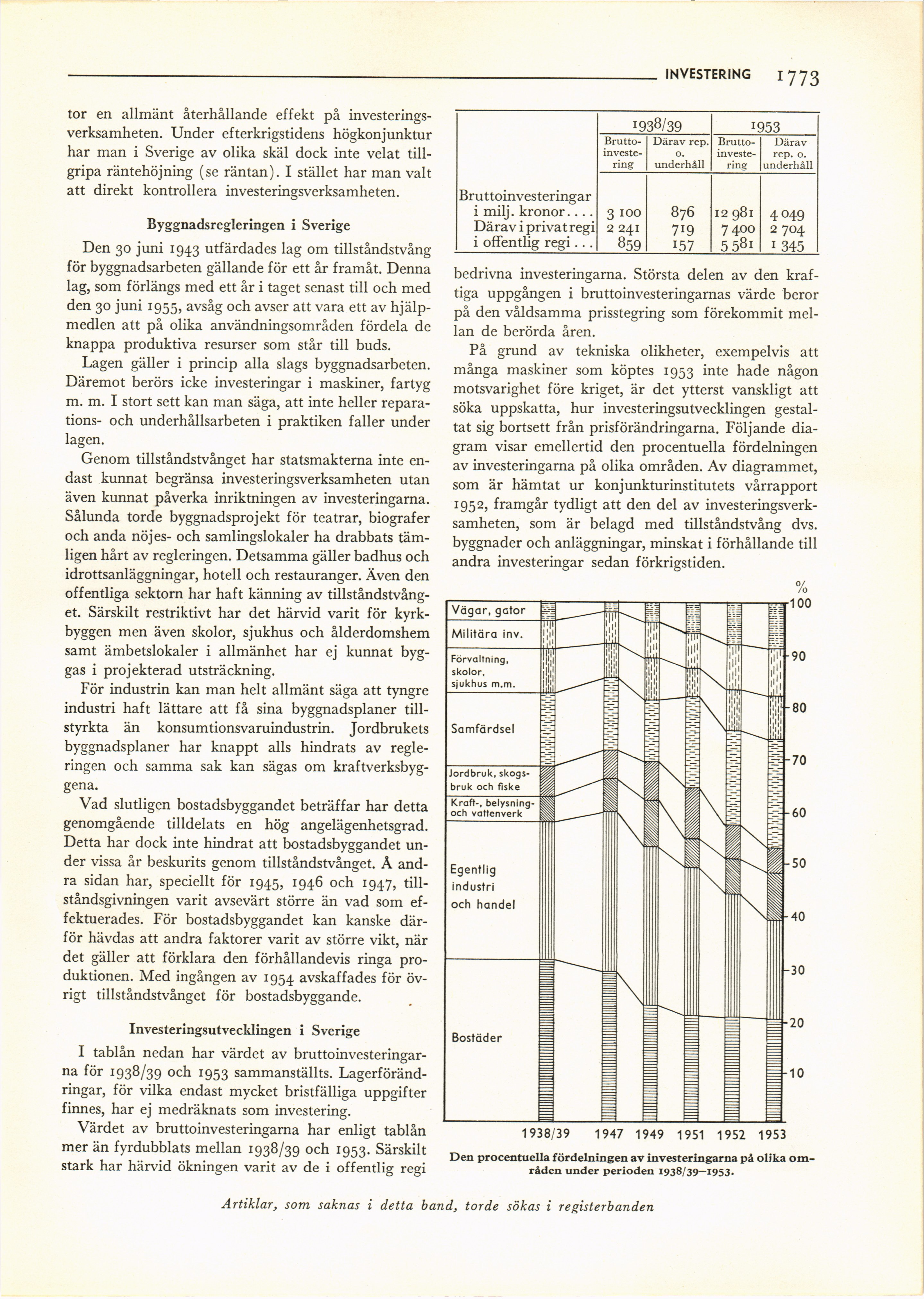 bruttoinvesteringarna för 1938/39 och 1953 sammanställts.