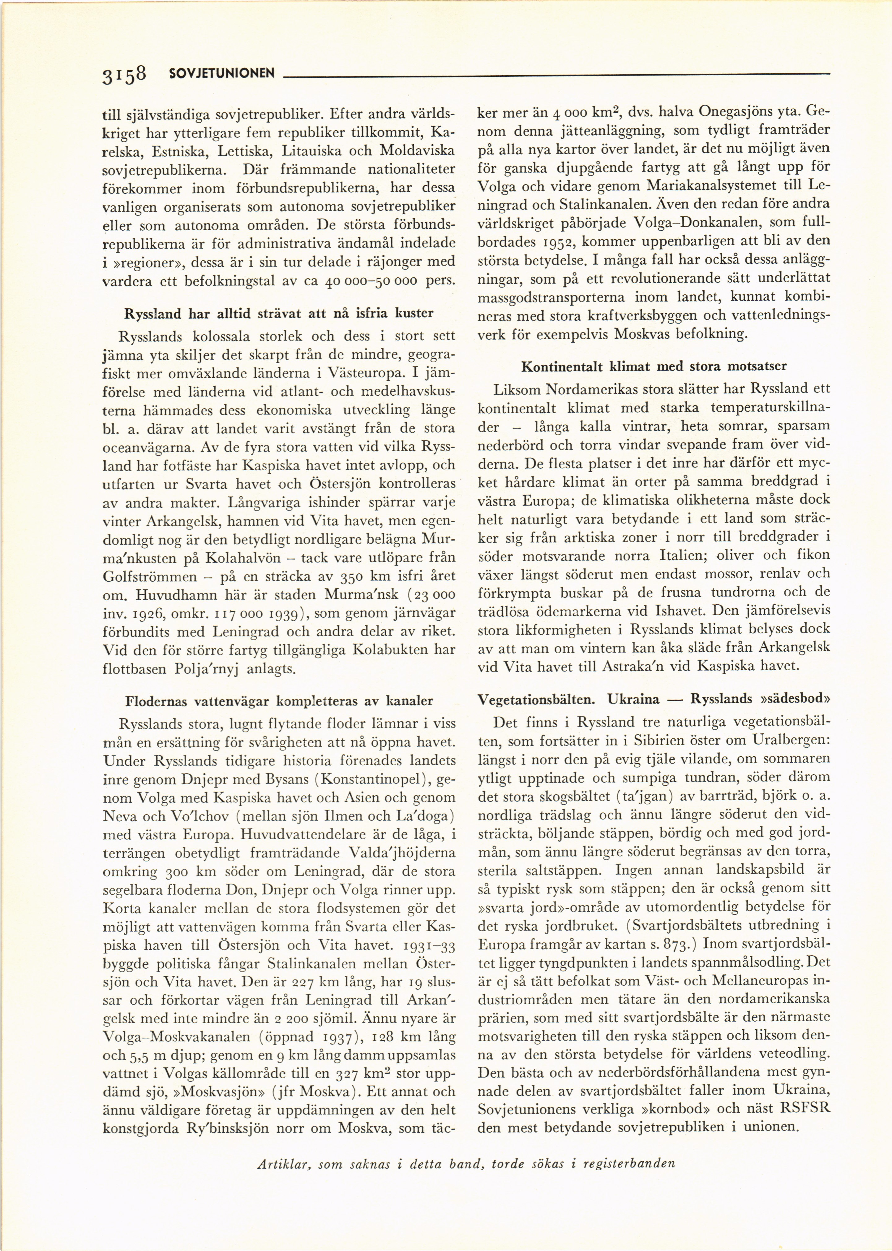 Full resolution (JPEG) - On this page / på denna sida - Sovjetunionen — väldet bakom järnridån - Hur det gamla tsarväldet styckades och omorganiserades - Ryssland har alltid strävat att nå isfria kuster - Flodernas vattenvägar kompletteras av kanaler - Kontinentalt klimat med stora motsatser - Vegetationsbälten. Ukraina — Rysslands »sädesbod»