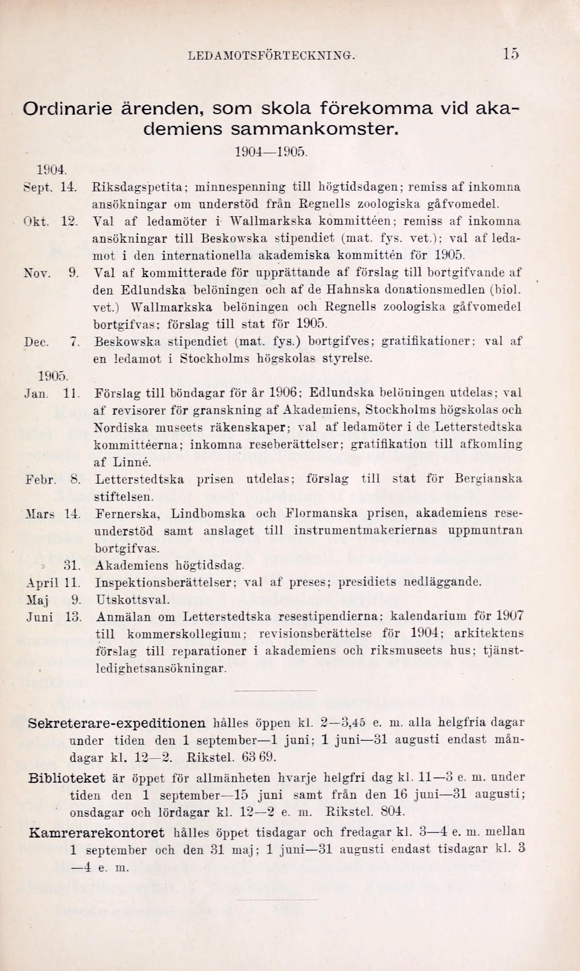 Febr. 8. Letterstedtska prisen utdelas: förslag till stat för Bergianska