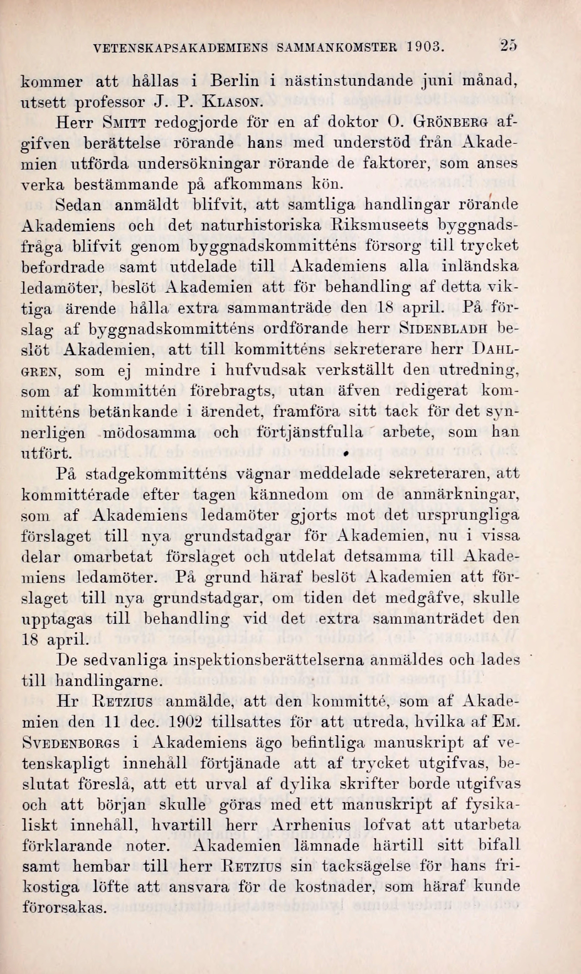 VETENSKAPSAKADEMIENS SAMMANKOMSTER 1903. 25