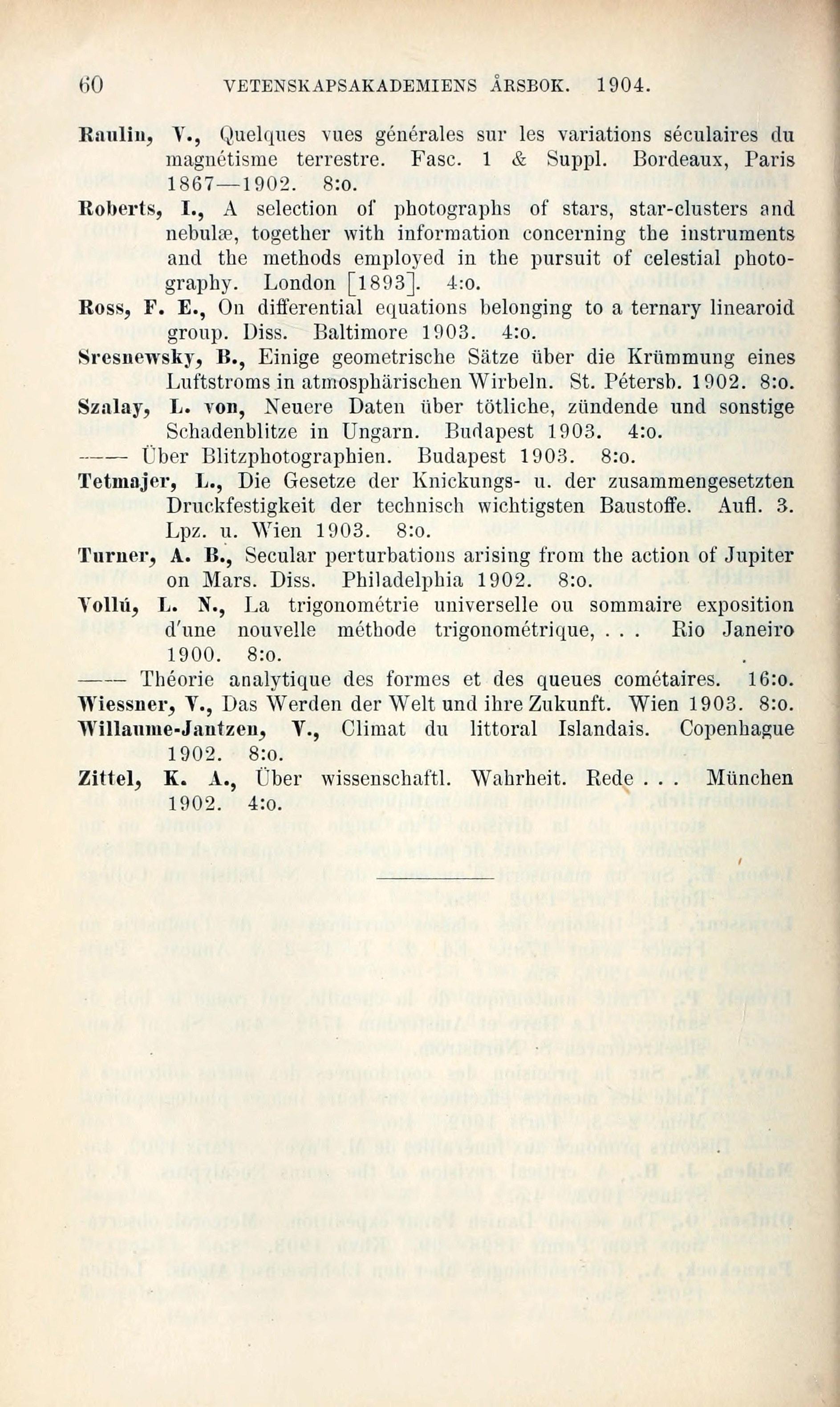 HO VETENSKAPSAKADEMIENS ÅRSBOK. 1904.