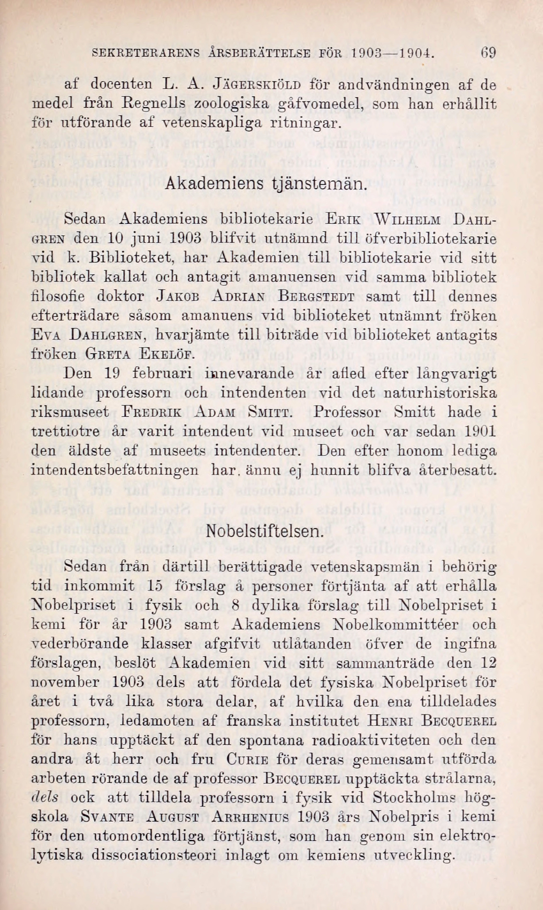 Full resolution (JPEG) - On this page / på denna sida - Sekreterarens årsberättelse för 1903—1904 afgifven på högtidsdagen den 28 mars 1904 - Afgifna berättelser - Akademiens tjänstemän - Nobelstiftelsen