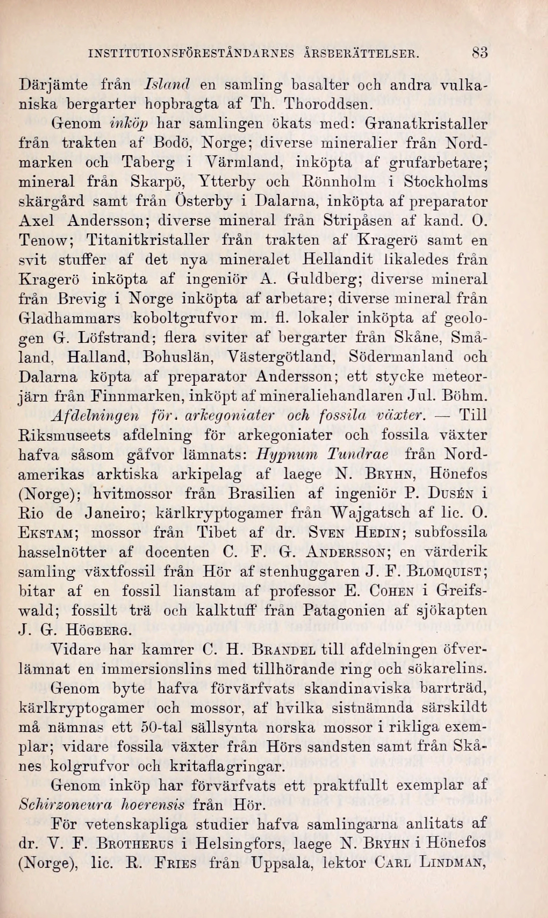 INSTITUTIONSFÖRESTÅNDARNES ÅRSBEKÄTTELSER. 83