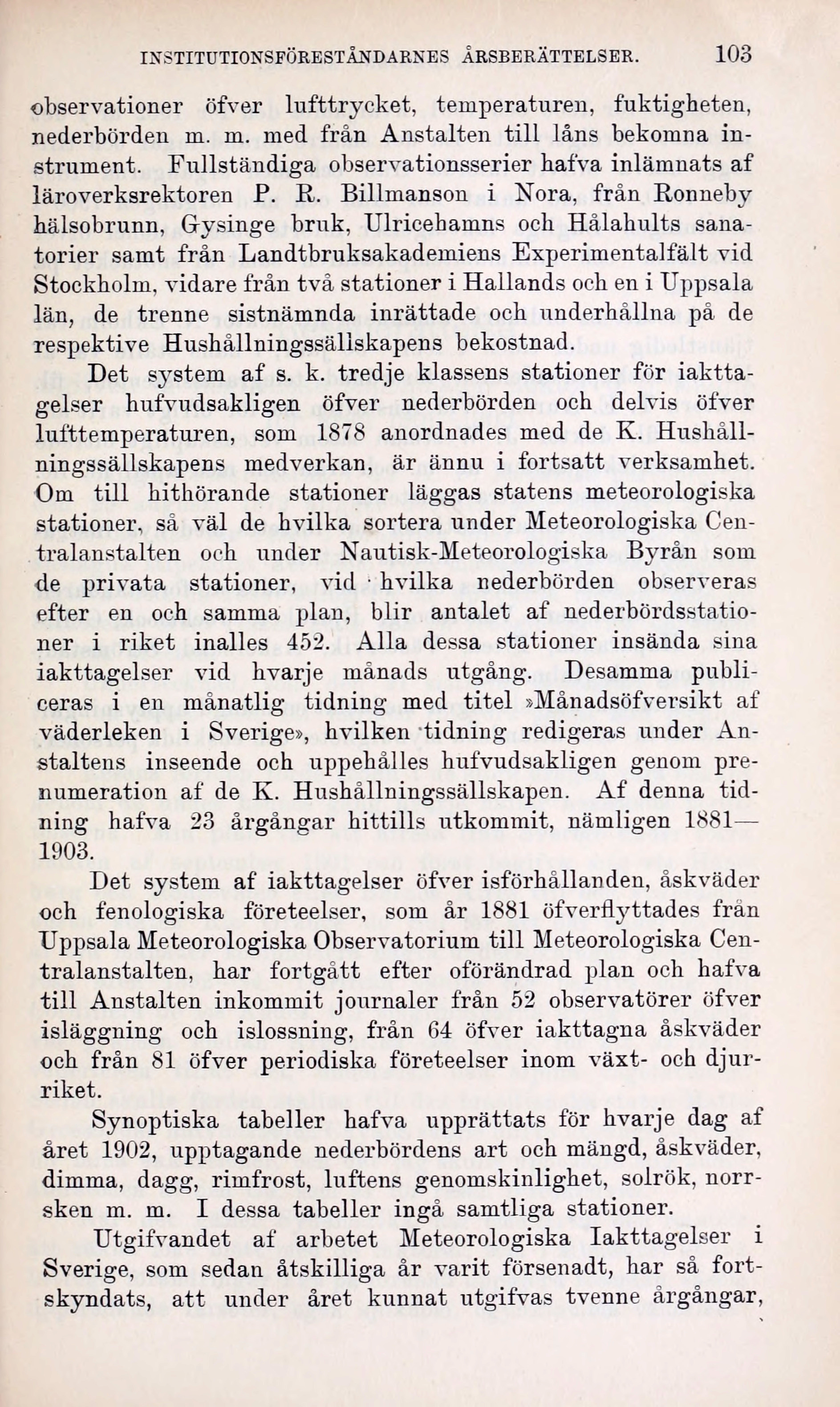 stationer, sä väl de hvilka sortera under Meteorologiska Cen-