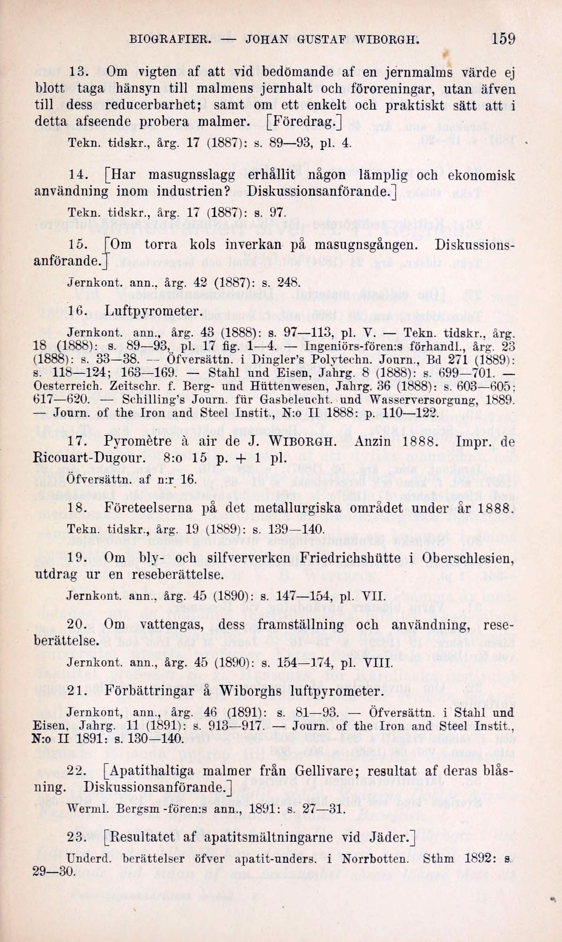 BIOGRAFIER. — JOHAN GUSTAF WIBORGH. 159