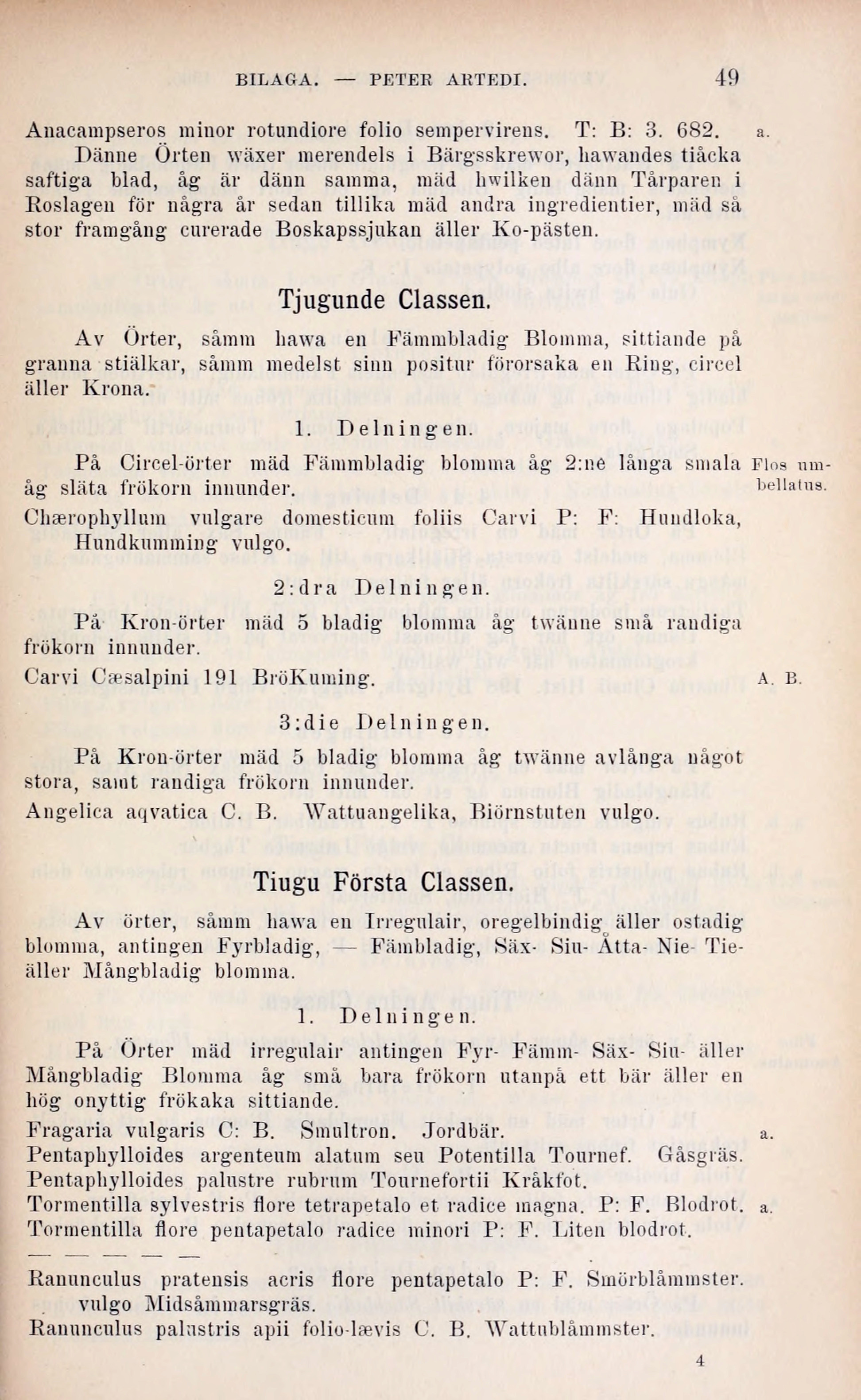 Full resolution (JPEG) - On this page / på denna sida - Bilaga: Kårt Förtekning På de Träen, Buskar åg Örter, såmm wäxa sponté wid Nordmalings Prästebord äller i närmaste byar där åmmkring Äfter Dänn Alldra-simplaste åg Klaraste Methoden i årdning satte av Petro Arctædio A:o 1729 in Februario