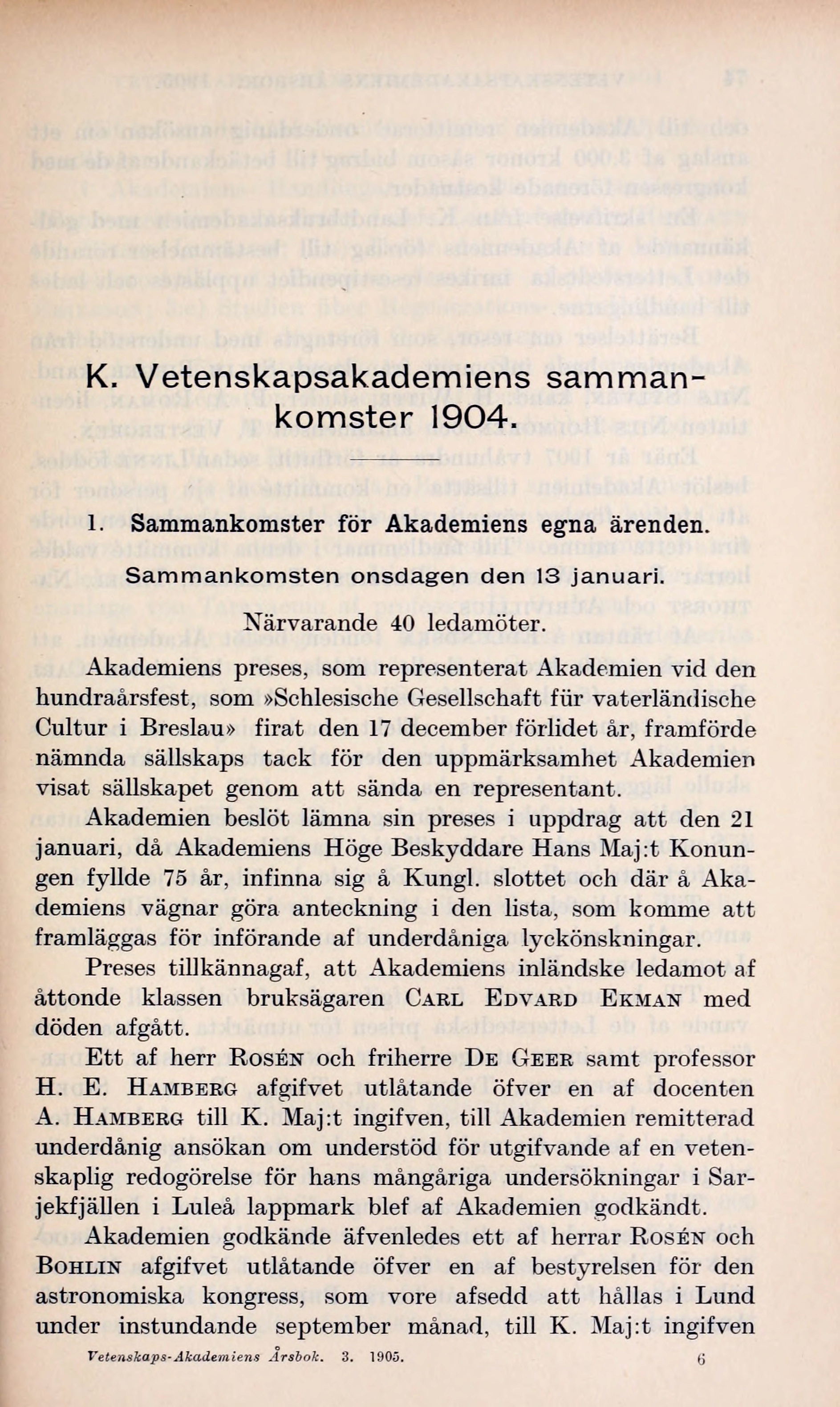 Full resolution (JPEG) - On this page / på denna sida - K. Vetenskapsakademiens sammankomster 1904 - 1. Sammankomster för Akademiens egna ärenden - Sammankomsten onsdagen den 13 januari