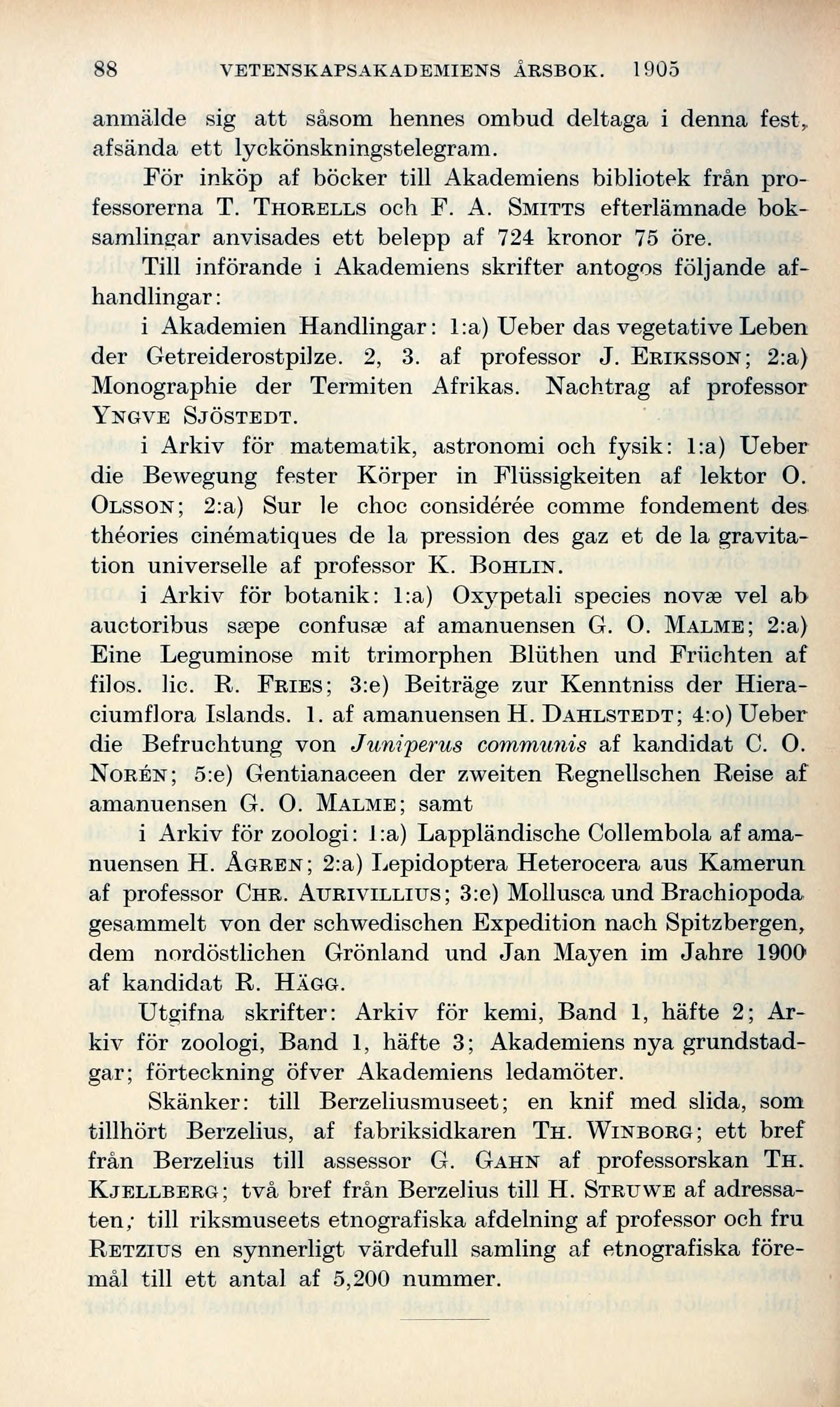 88 VETENSKAPSAKADEMIENS ÅRSBOK. 1905