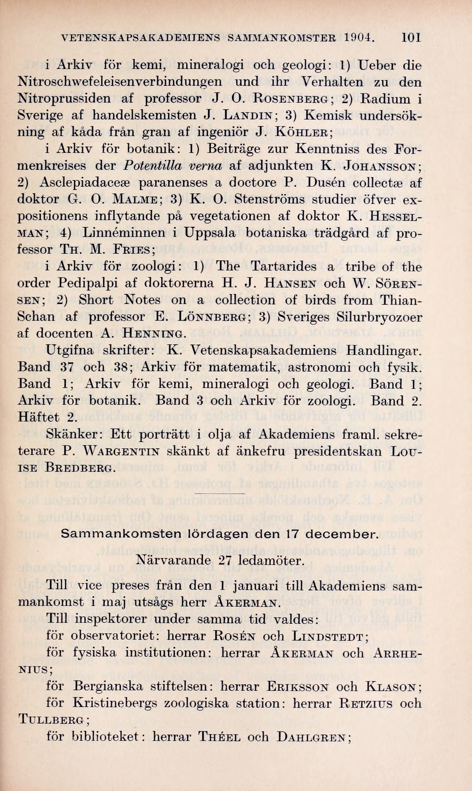 VETENSKAPSAKADEMIENS SAMMANKOMSTER 1904. 101