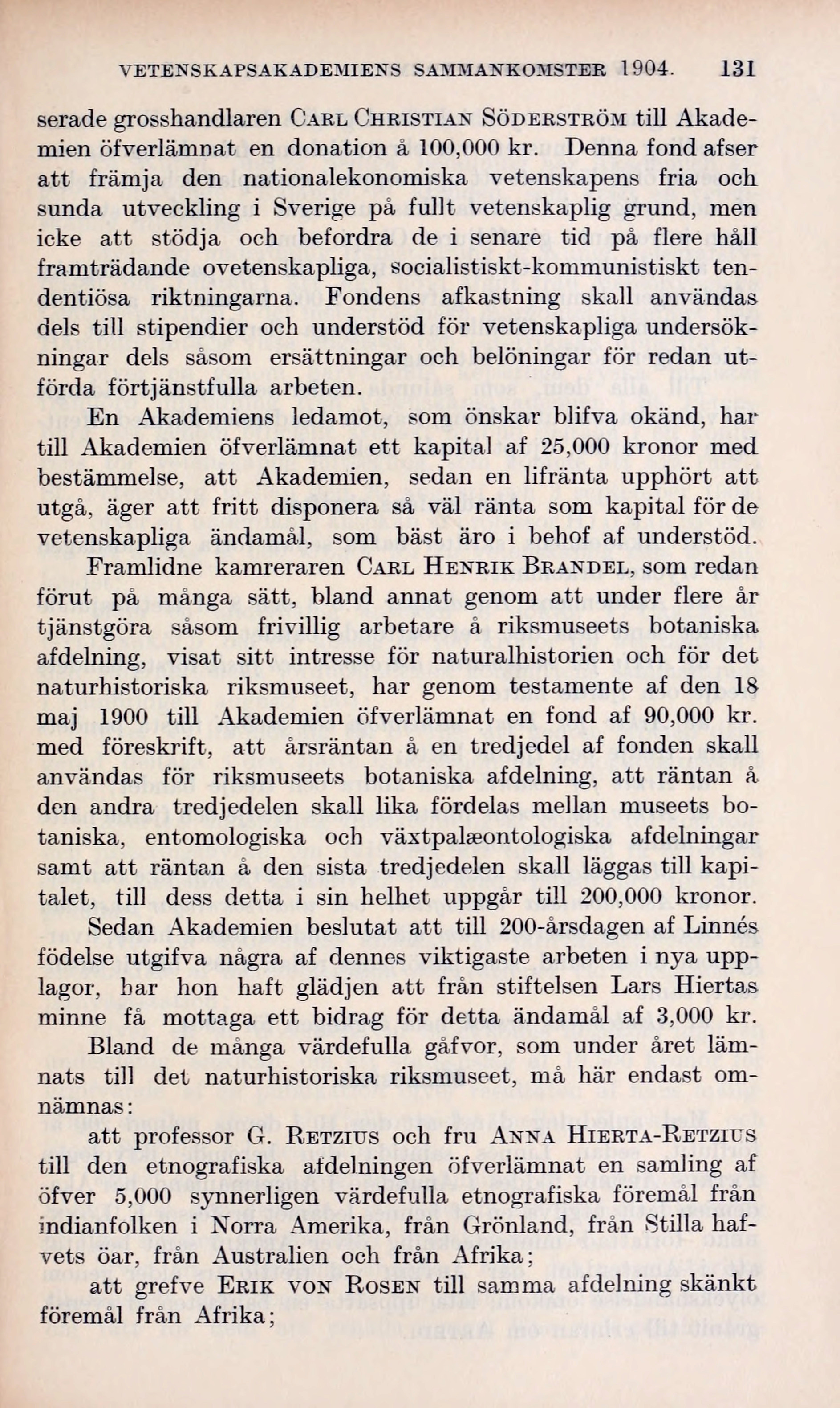 VETENSKAPSAKADEMIENS SAMMANKOMSTER 1904. 131