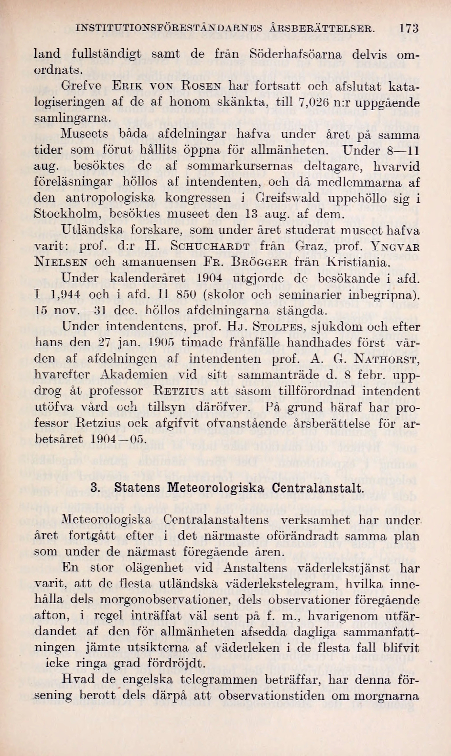 INSTITUTIONSFÖRESTÅNDARNES ÅRSBERÄTTELSER. 173
