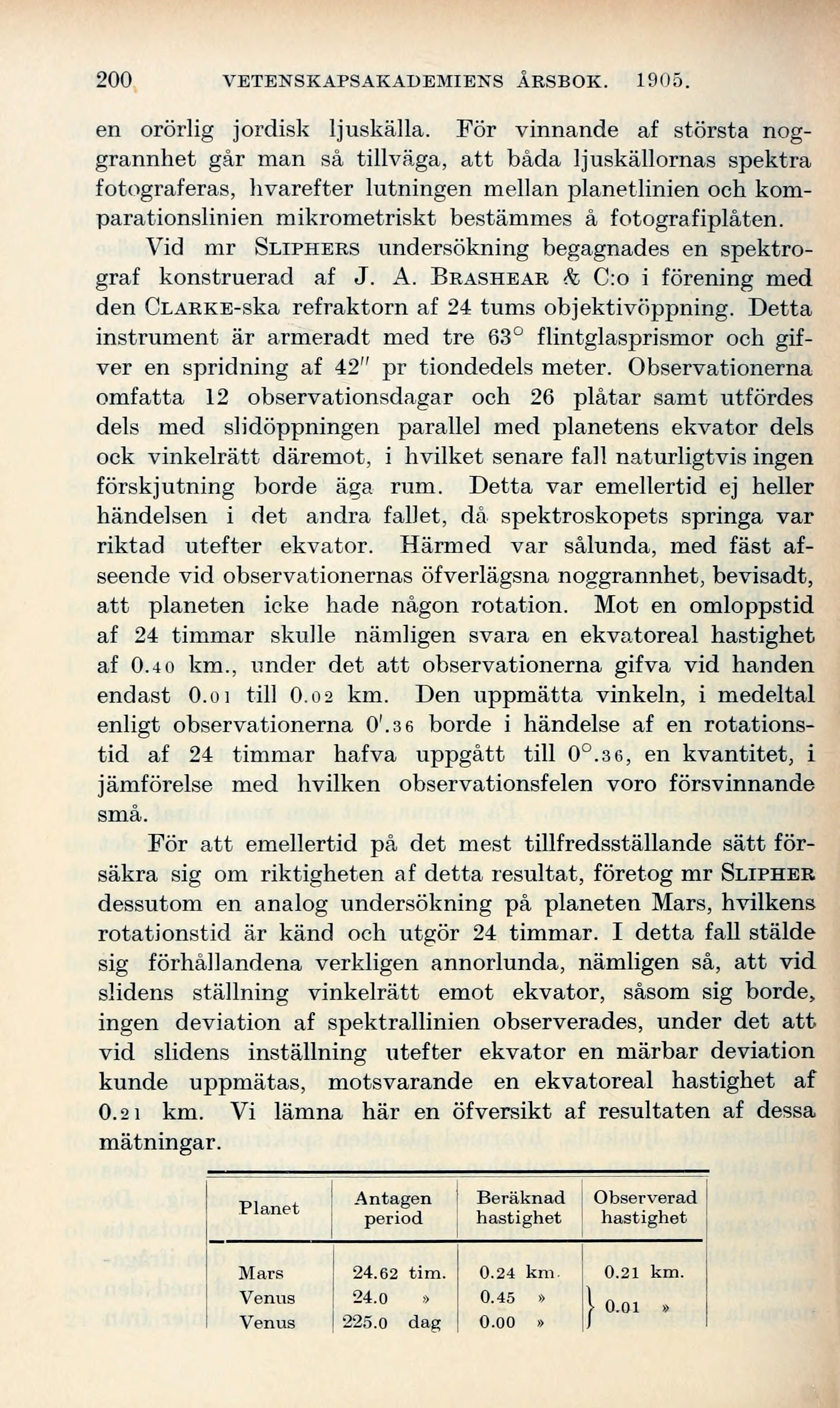 kunde uppmätas, motsvarande en ekvatoreal hastighet af