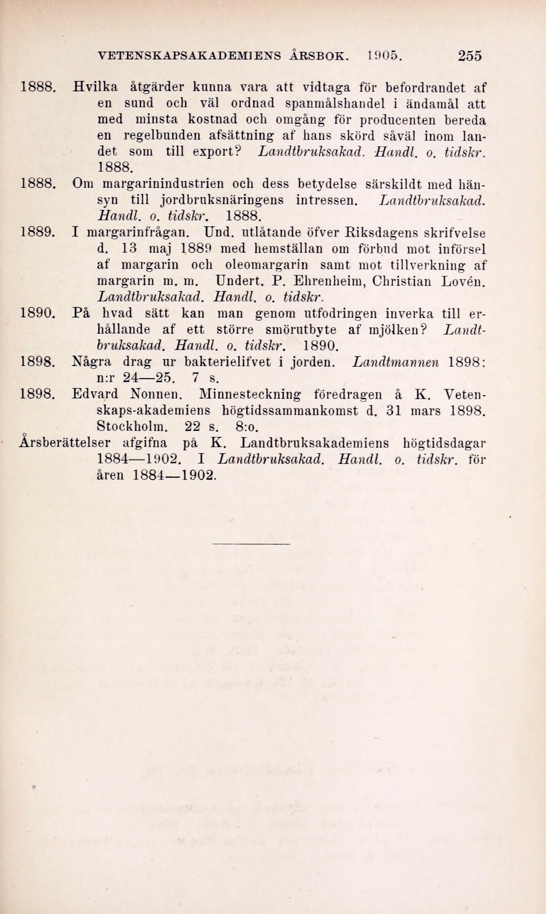 1884—1902. I Landtbruksakad. Handl. o. tidskr. för