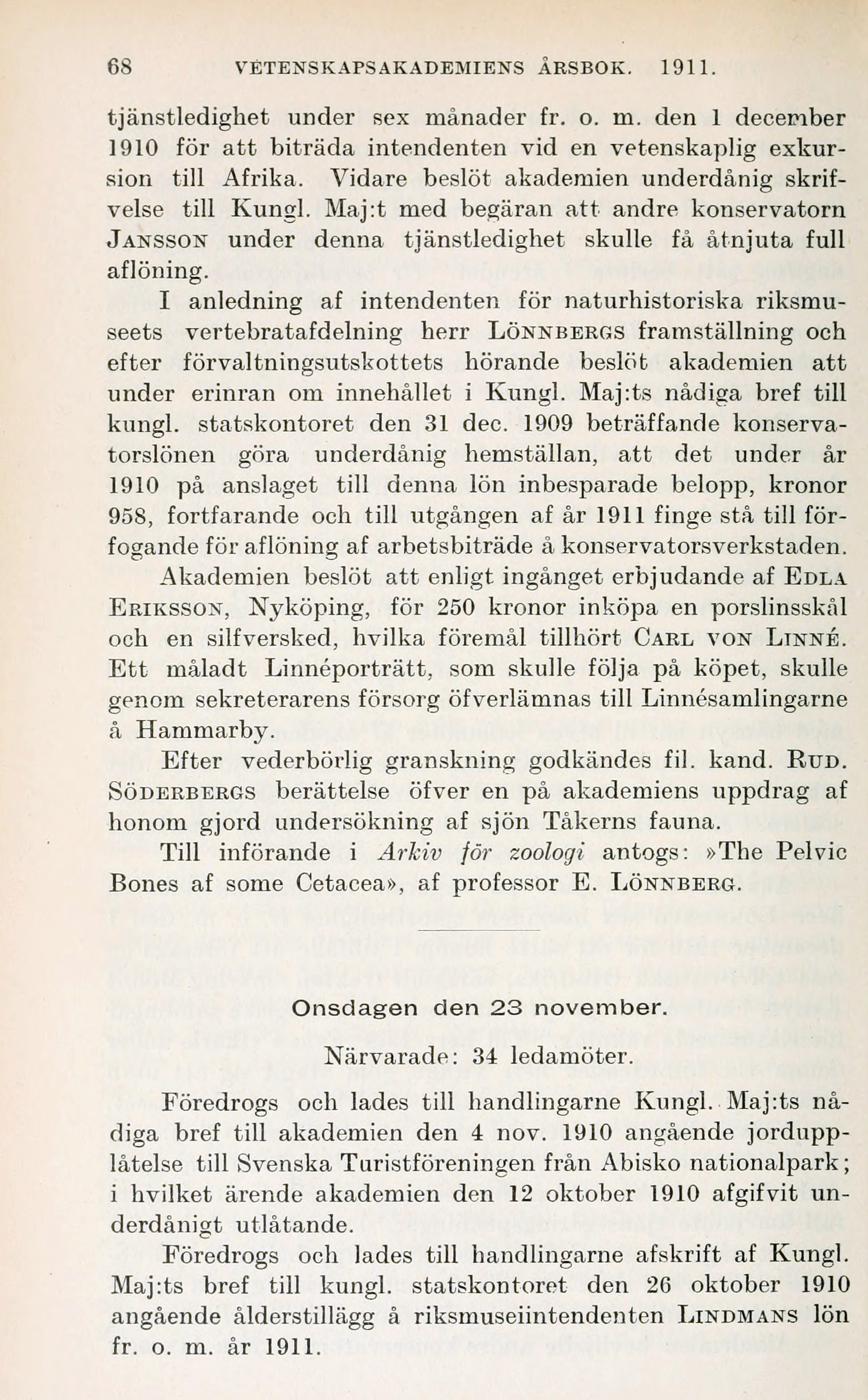 68 VETENSKAPSAKADEMIENS ÅRSBOK. 1911.