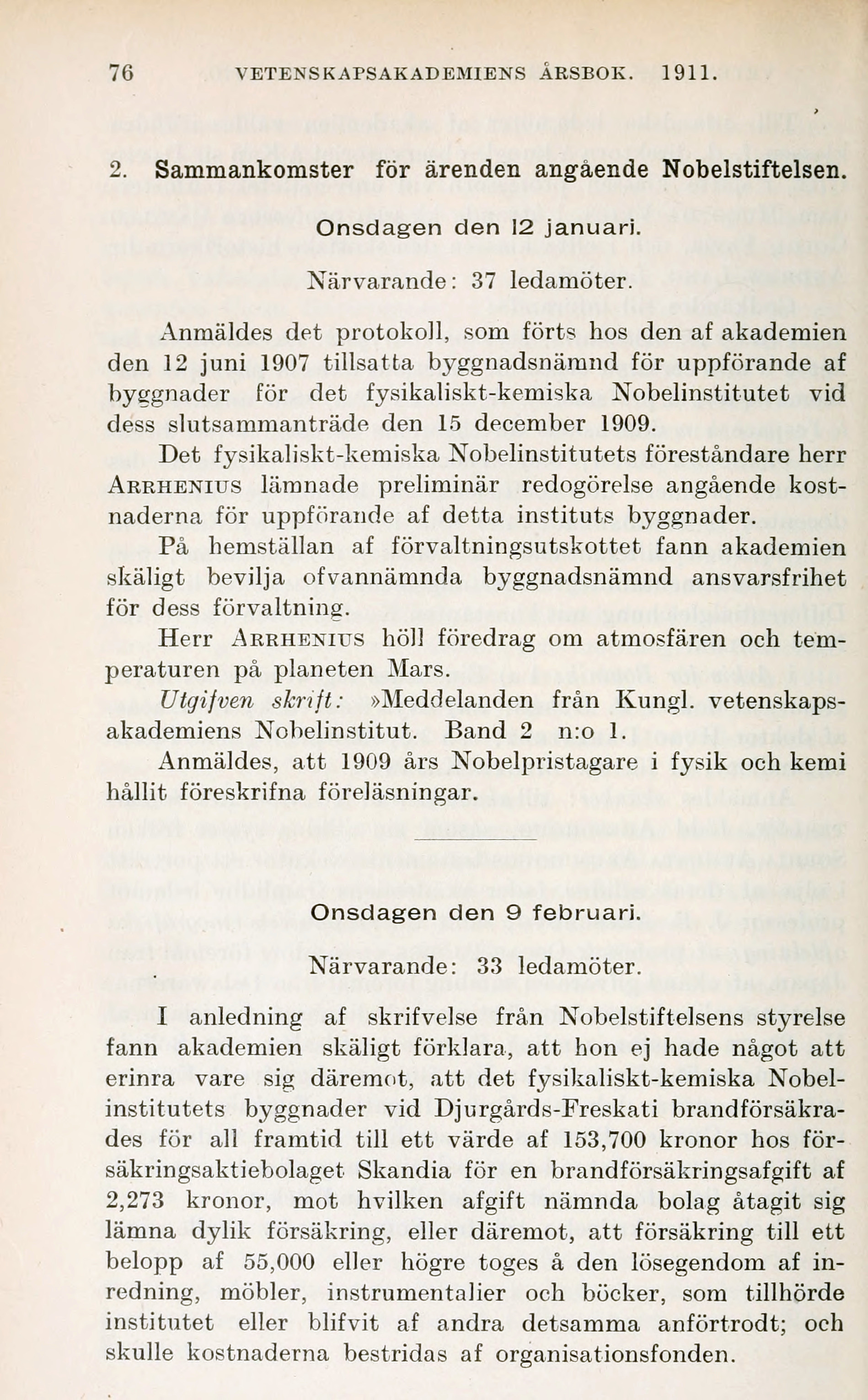 76 VETENSKAPSAKADEMIENS ÅRSBOK. 1911.