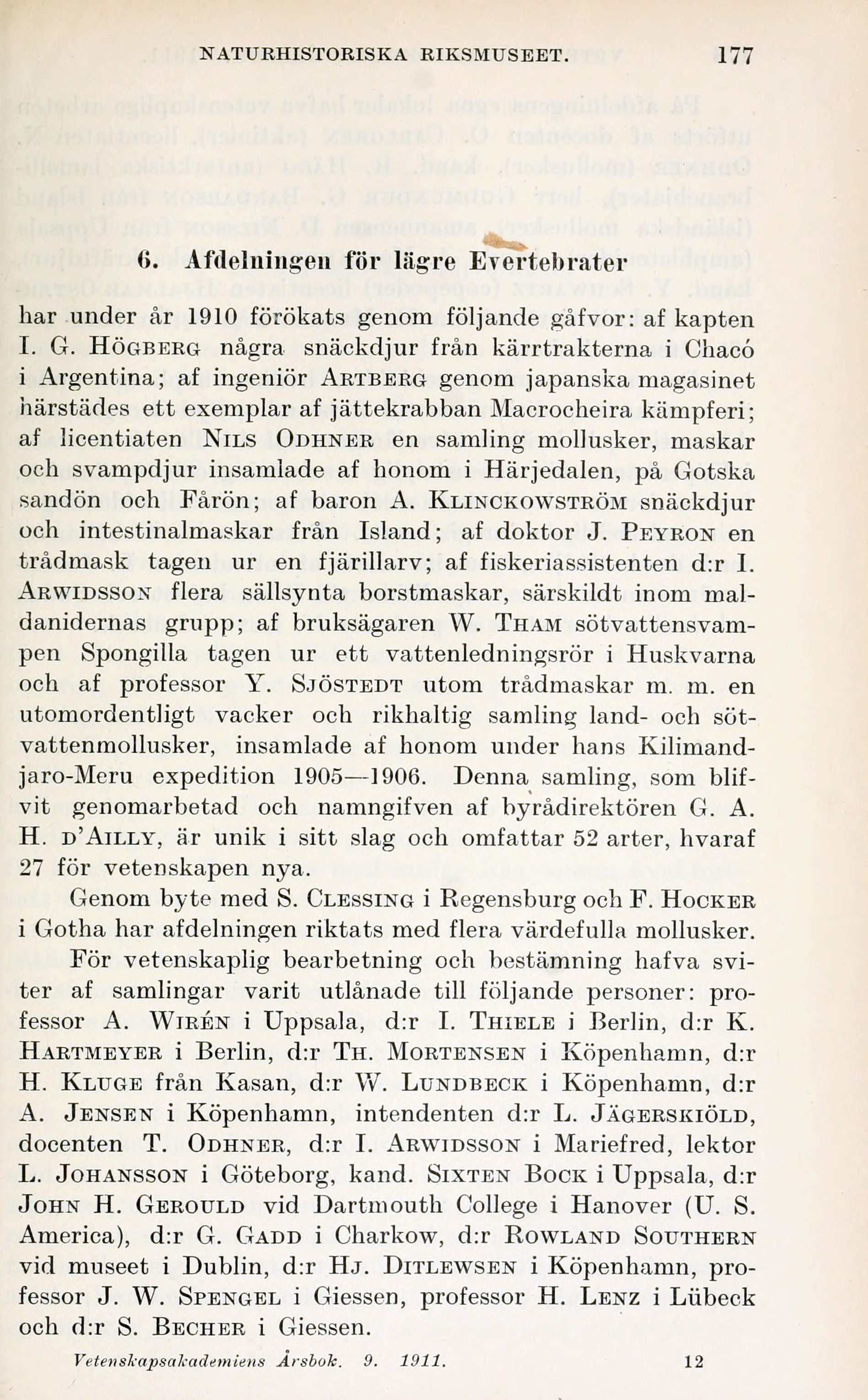 Full resolution (JPEG) - On this page / på denna sida - Institutionsföreståndarnas Årsberättelser - B. Naturhistoriska Riksmuseet - 6. Afdelningen för lägre Evertebrater
