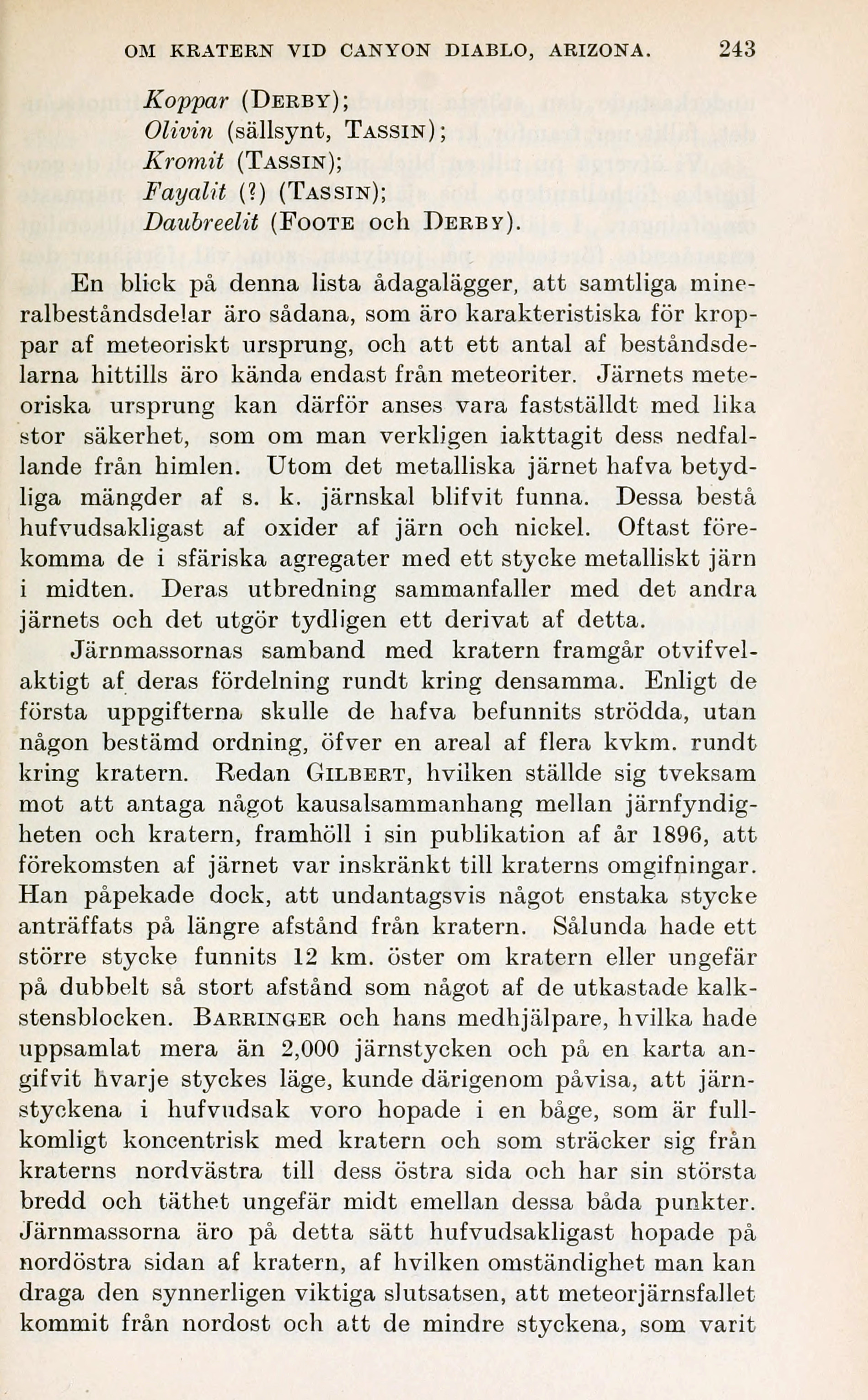 OM KRATERN VID CANYON DIABLO, ARIZONA. 243