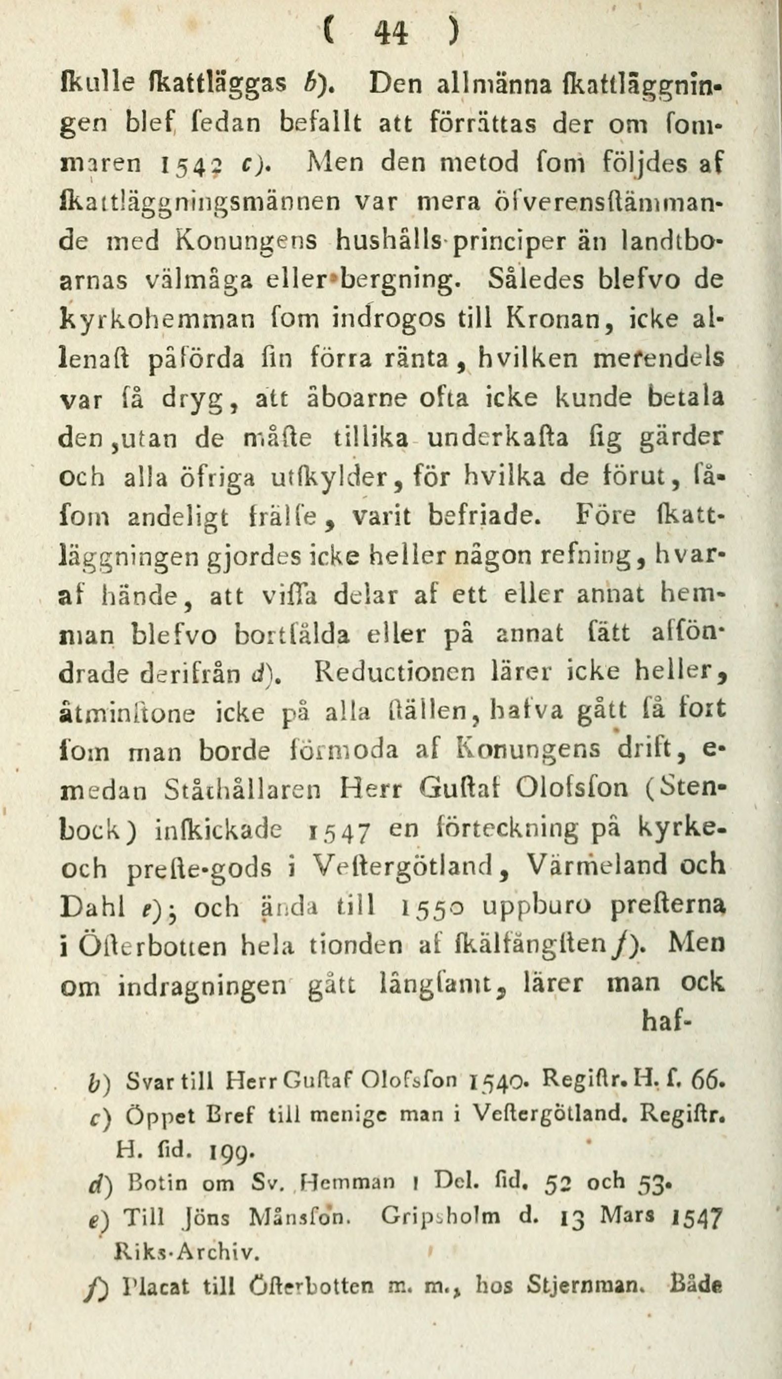 b) Svar till HcrrGuflaf Oloföfon 1540. Regiflr. H, f. 66.