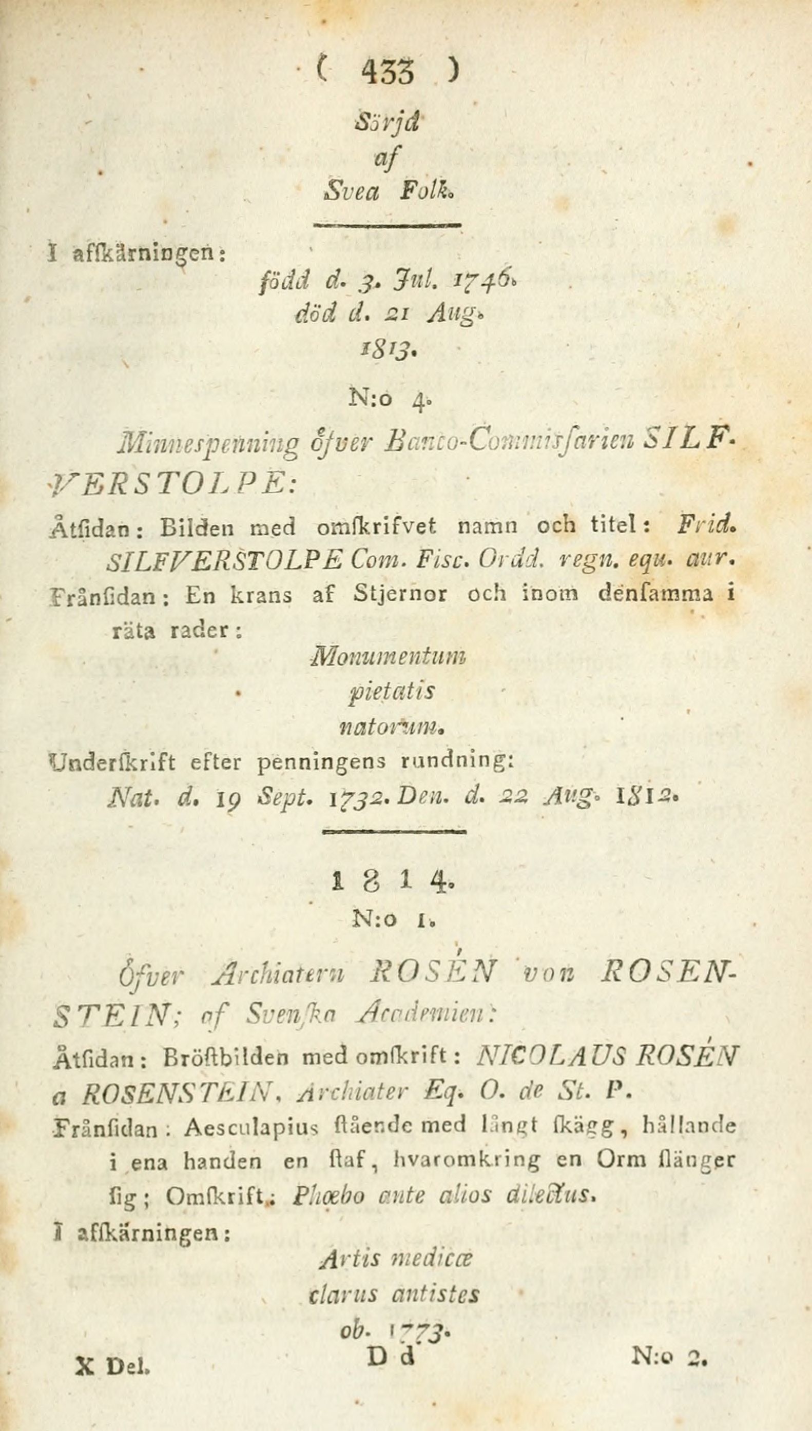 Åtfidan: Bröftbüden med omfkrift : NICOLAUS ROSÉN