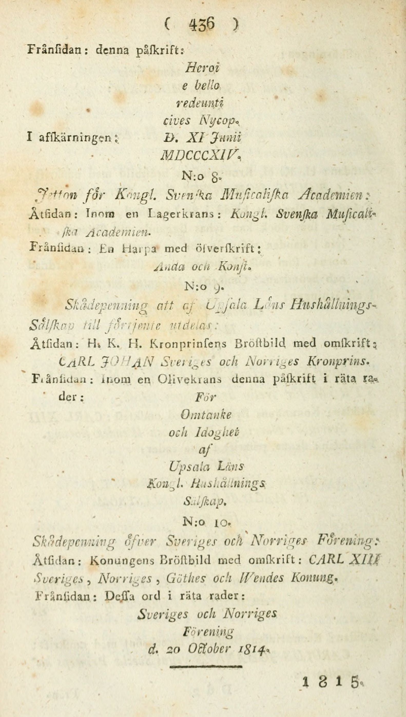 Åtfidan : Konungens Bröftbild med omfkrift : CARL XlXf