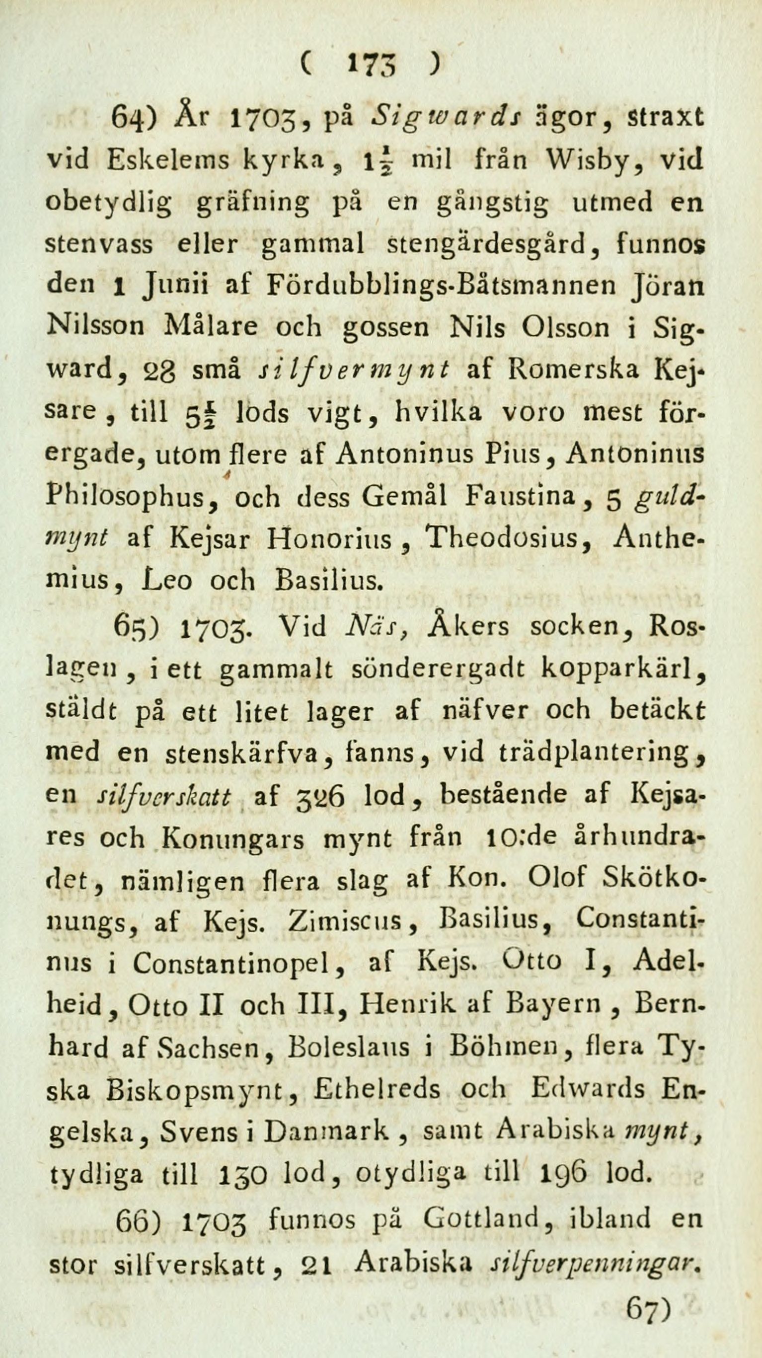 66) 1703 funnos på Gottland, ibland en