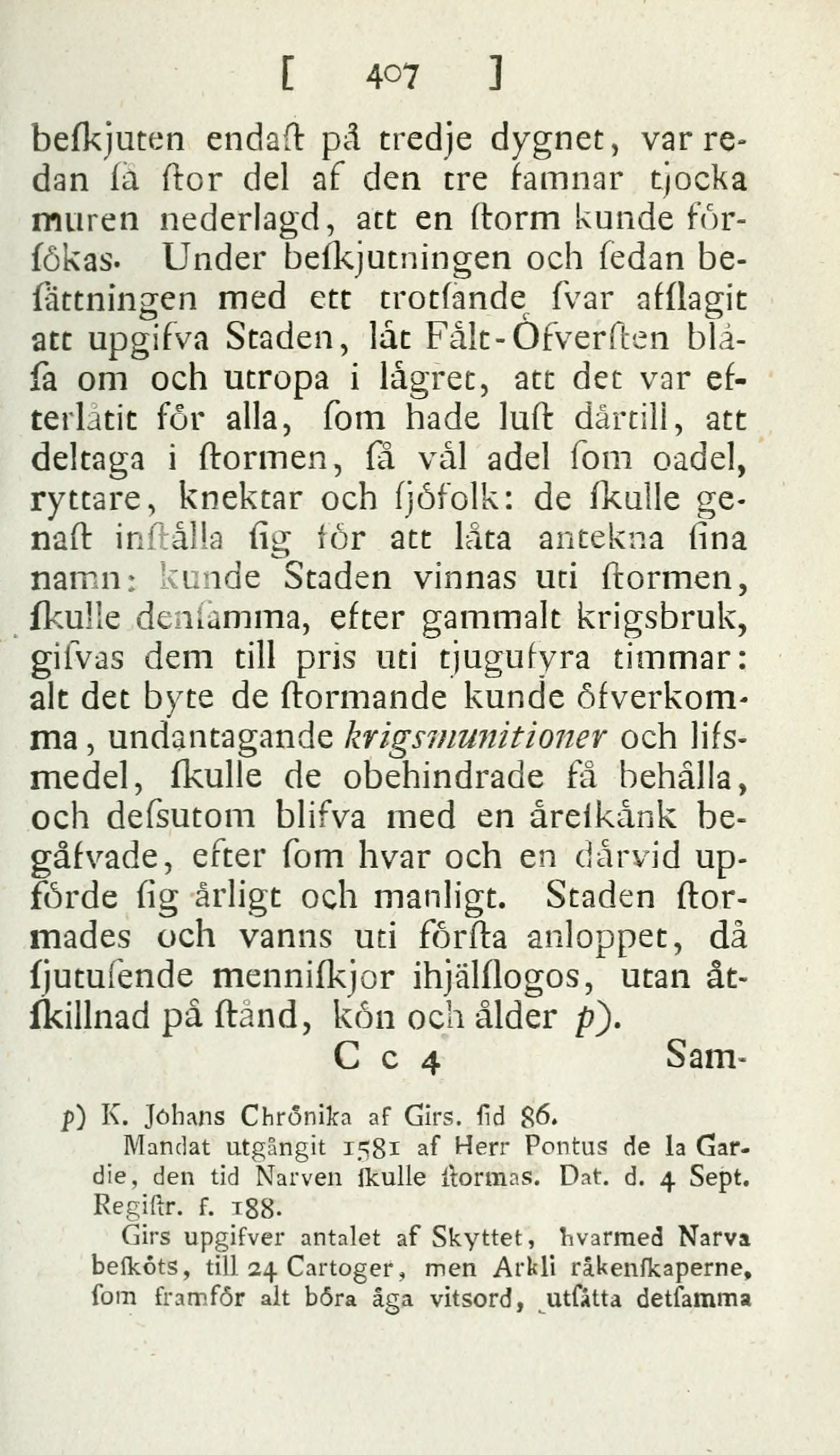 Gardie, den tid Narven skulle ftormaS. Dat. d. 4 Sept.