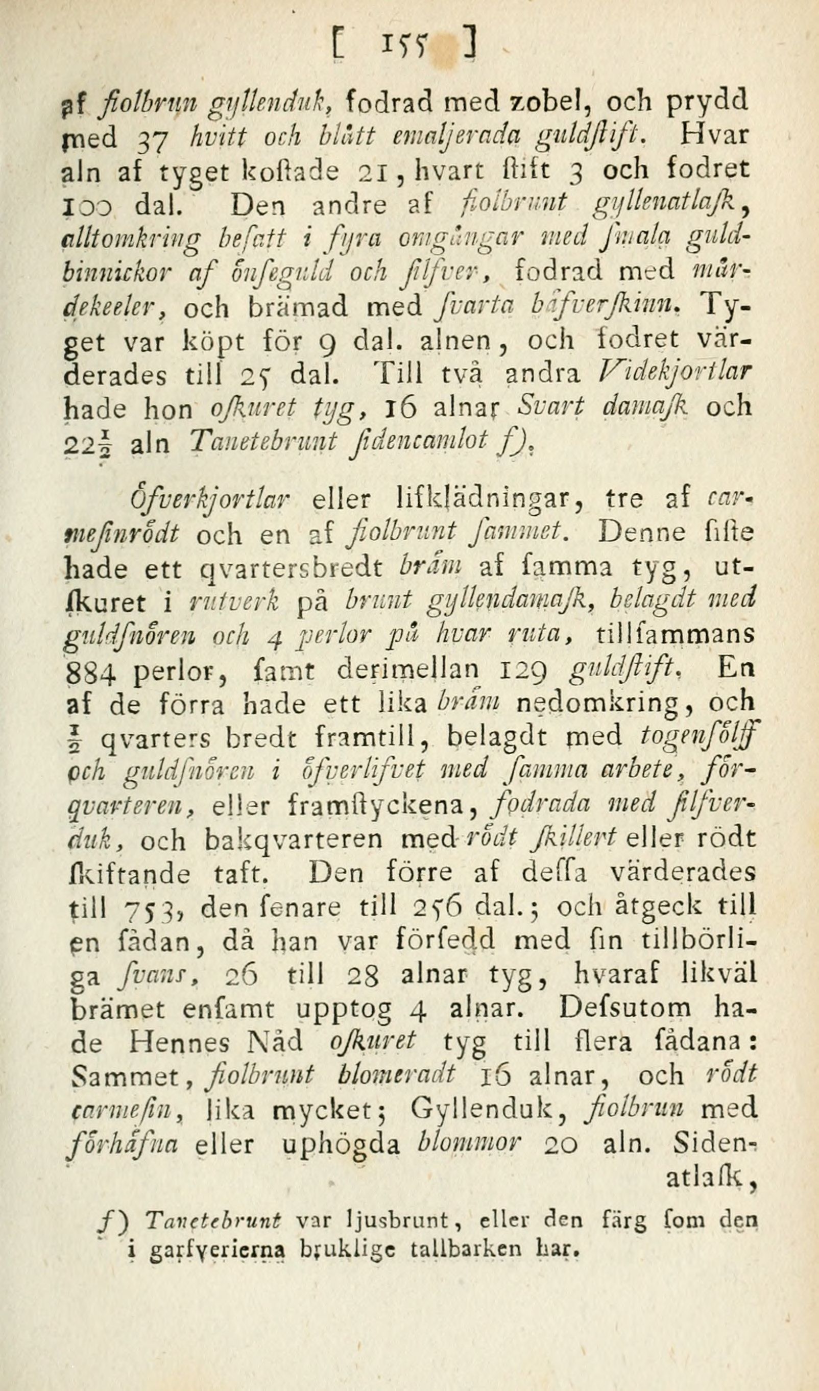 pf fiolbrnn gyllenduk, fodrad med zobel, och prydd
