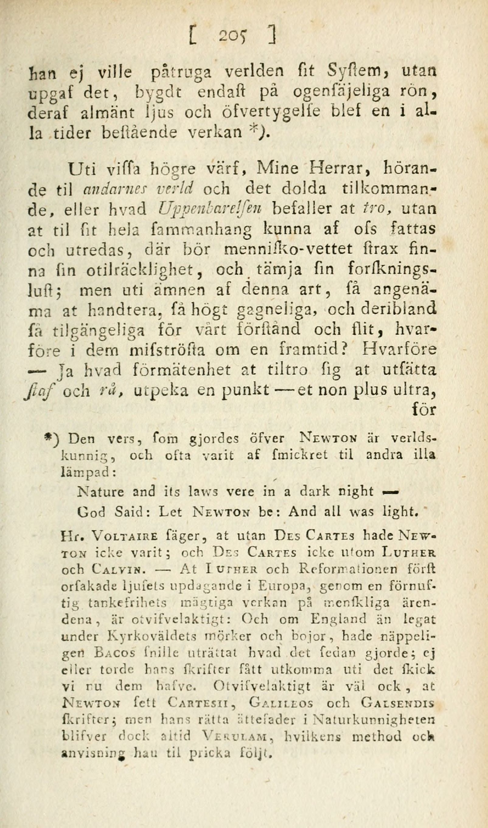 Newton icke varit; och Des Cartes icke utom Luther