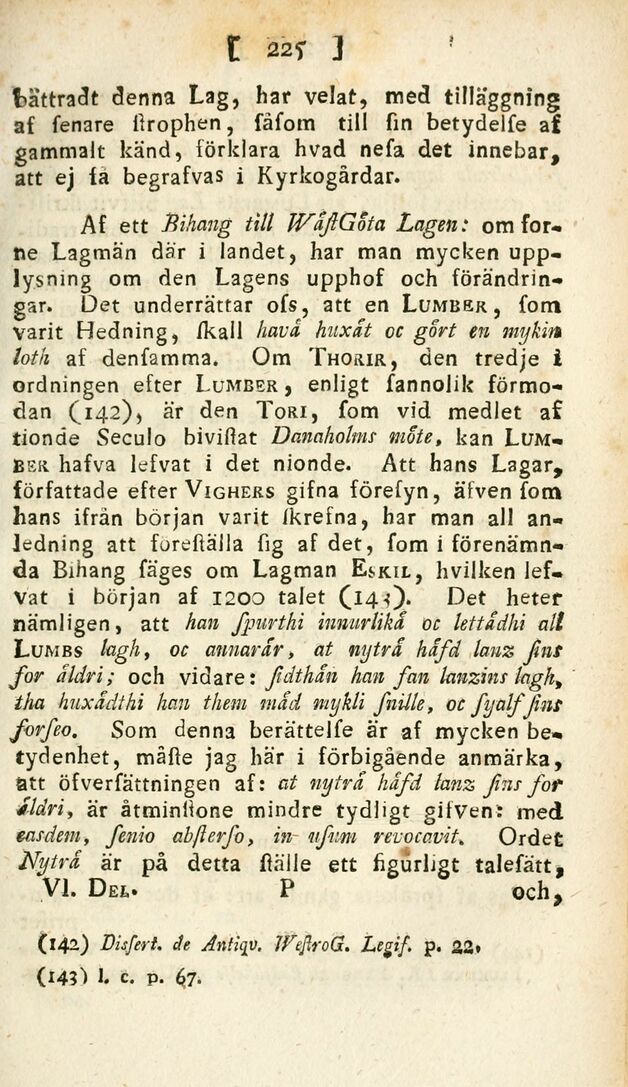Lumber hafva lefvat i det nionde. Att hans Lagar,