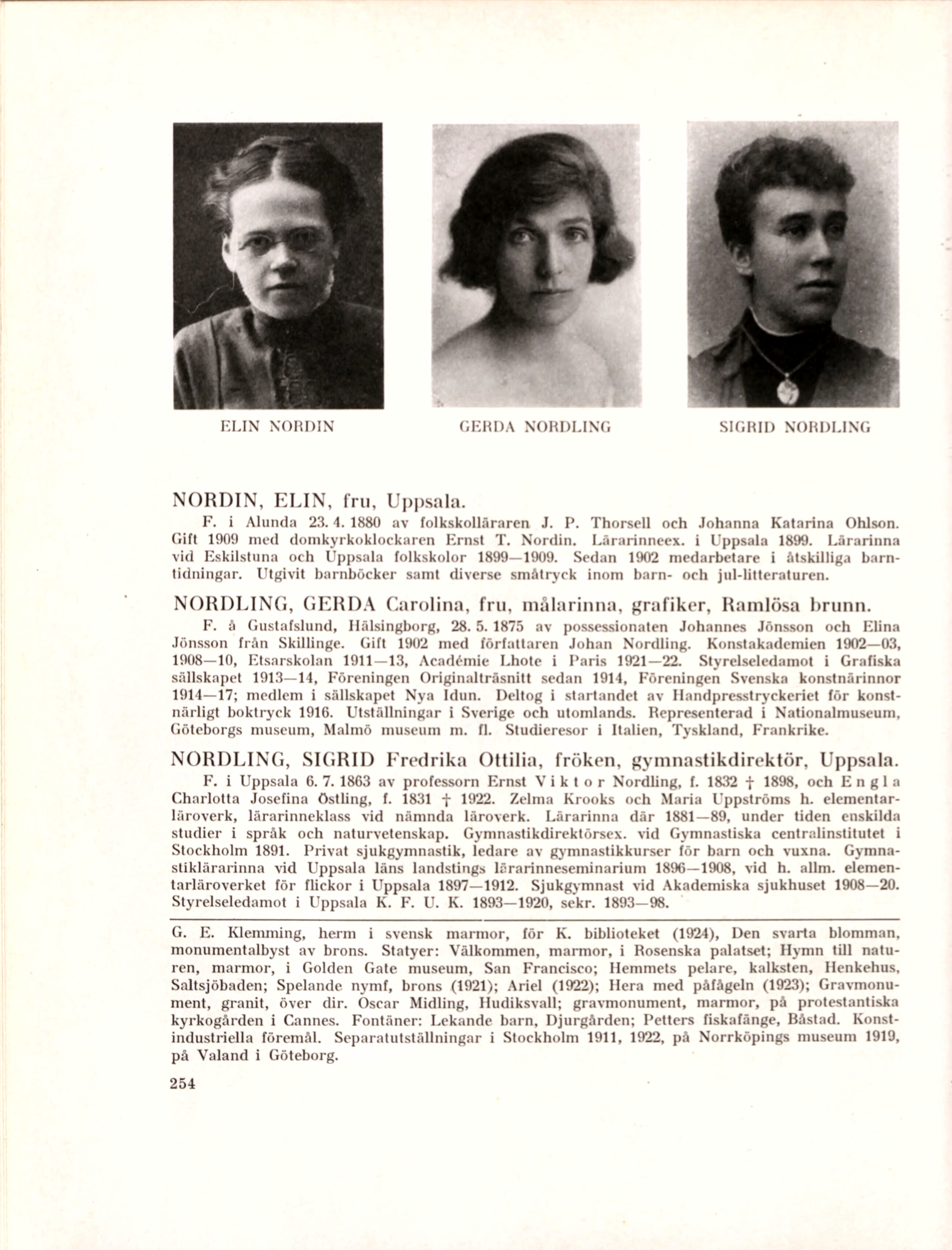 Full resolution (JPEG) - On this page / på denna sida - Porträtt och biografier - Nordin, Elin - Nordling, Gerda - Nordling, Sigrid