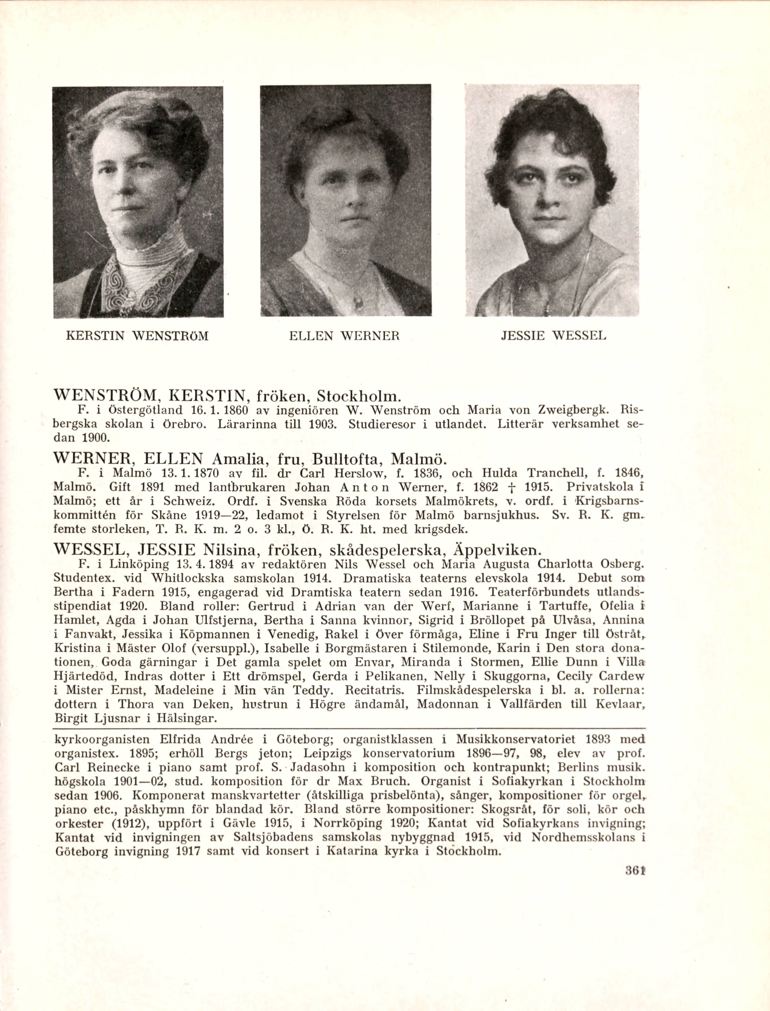 Full resolution (JPEG) - On this page / på denna sida - Porträtt och biografier - Wenström, Kerstin - Werner, Ellen - Wessel, Jessie