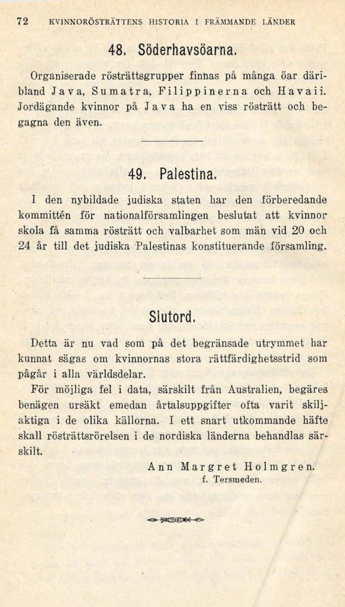 72         KVINNORÖSTRÄTTENS  HISTORIA   J   FRÄMMANDE   LÄNDER