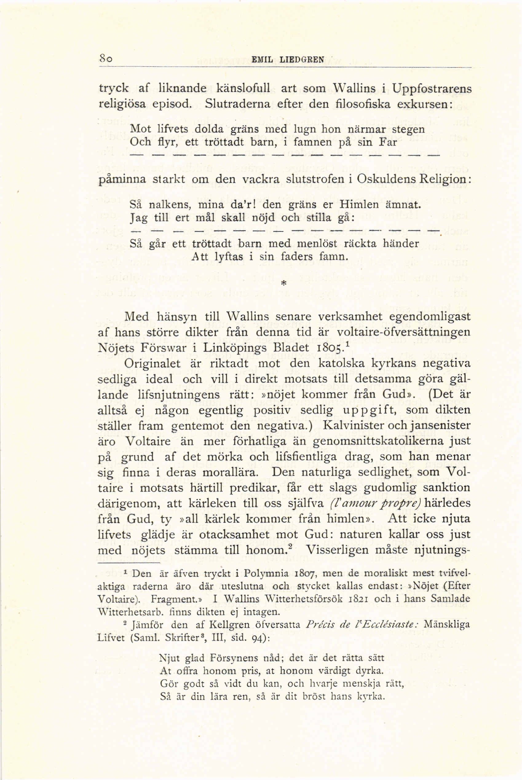 Voltaire). Fragment.» I Wallins Witterhetsförsök 1821 och i hans Samlade