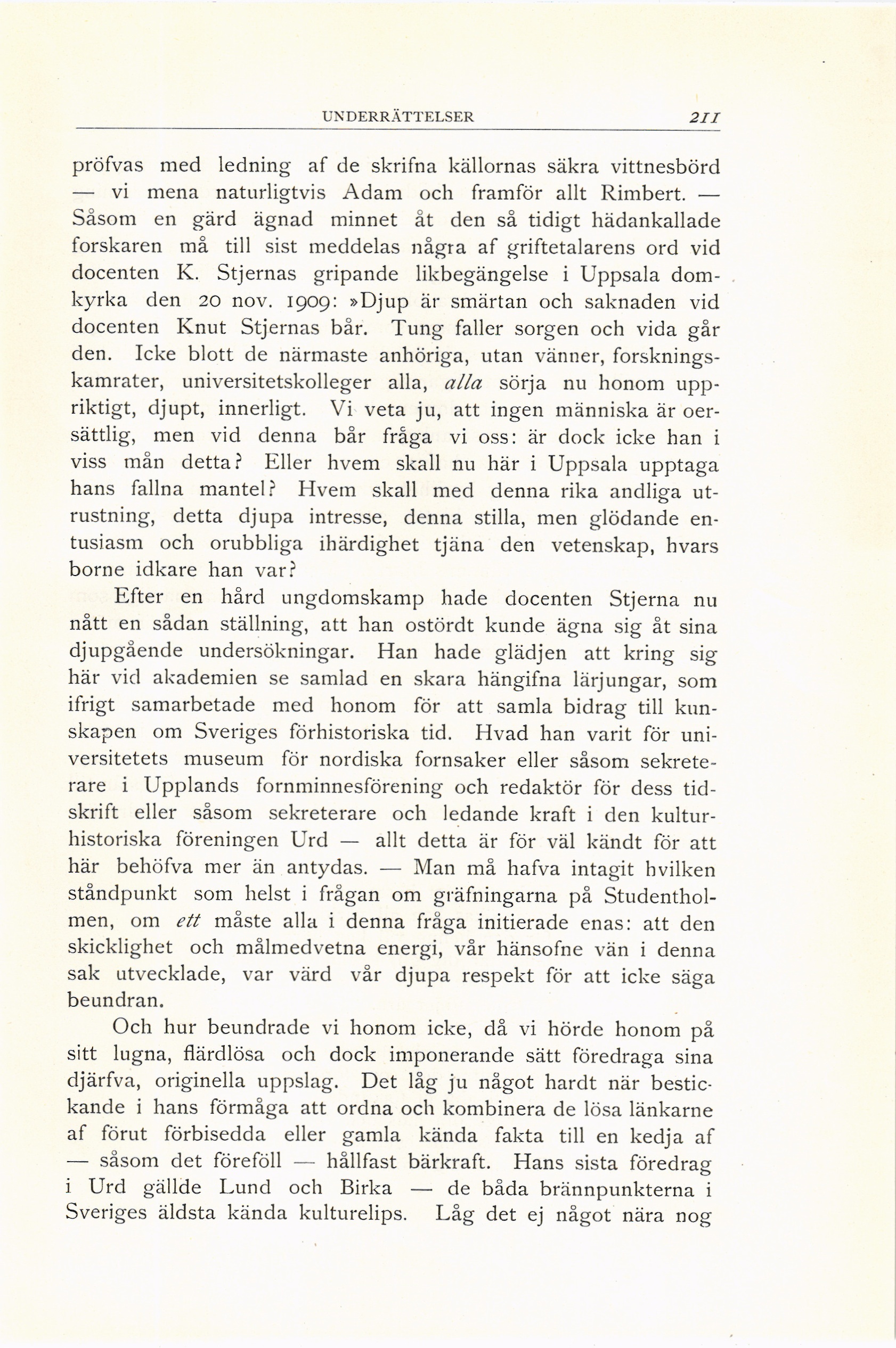 docenten K. Stjernas gripande likbegängelse i Uppsala