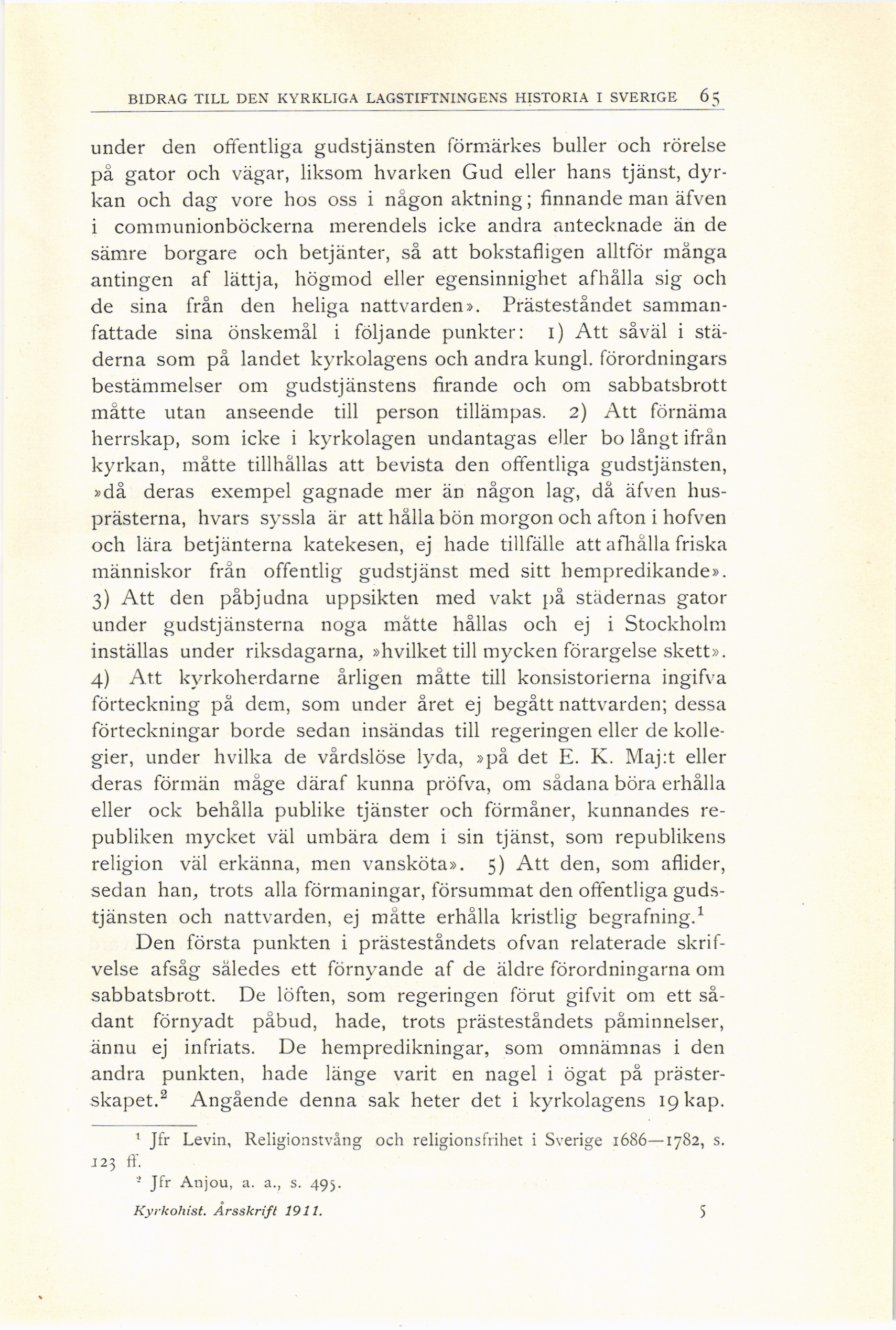 1 Jfr Levin, Religionstvång och religionsfrihet i Sverige 1686—1782, s.