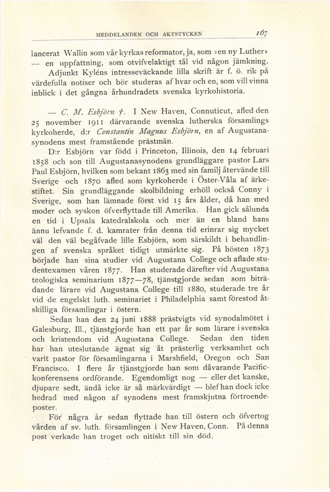 — C. M. Esbjörn †. I New Haven, Connuticut, afled den