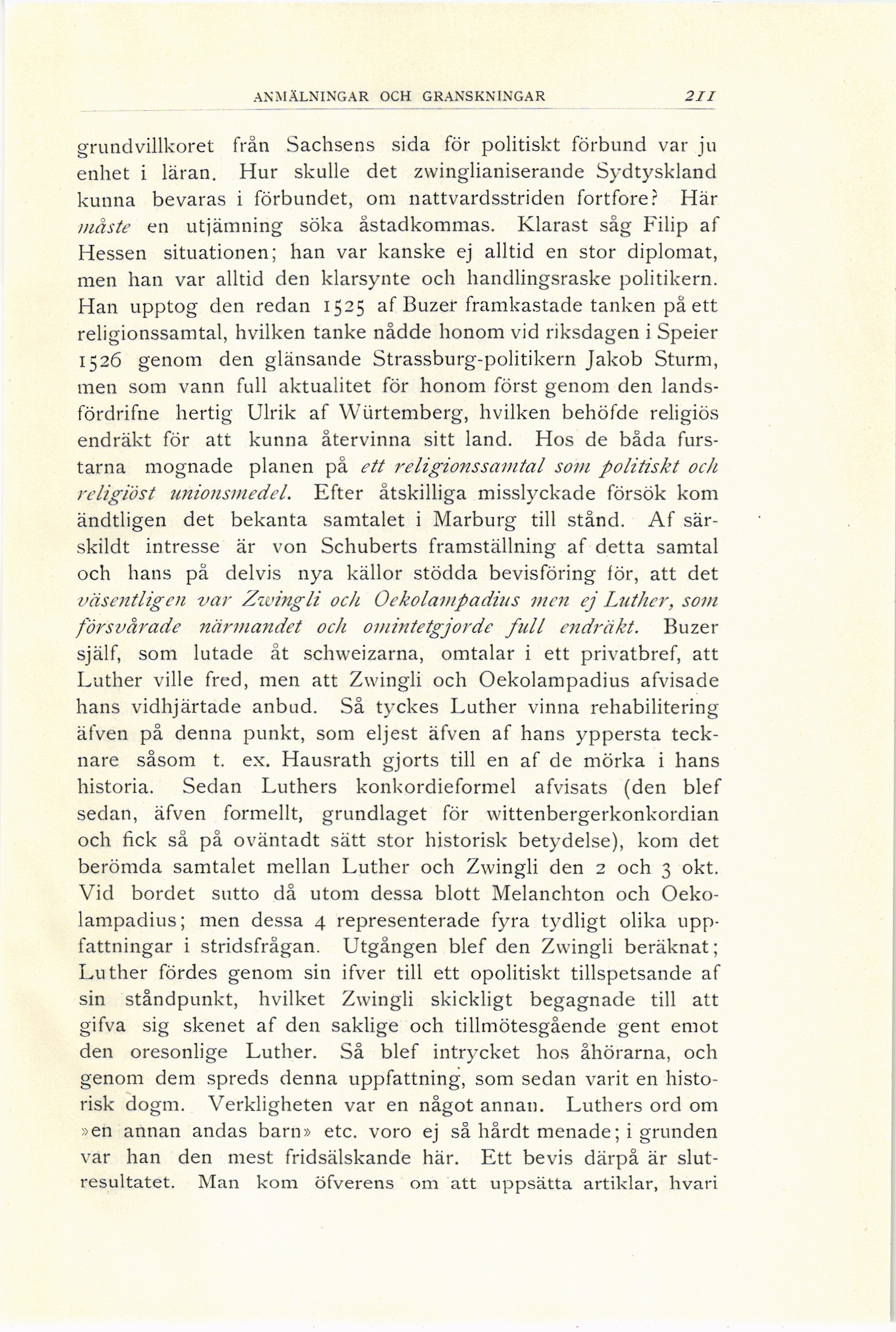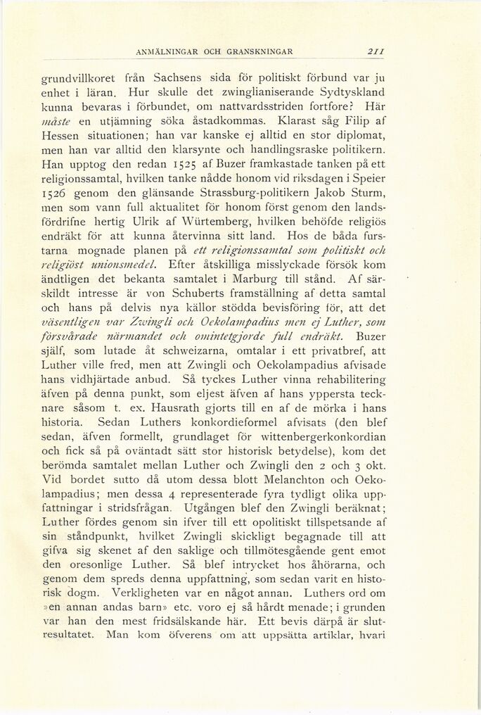 Full resolution (JPEG) - On this page / på denna sida - Litteraturöfversikter, granskningar och anmälningar - Hj. Holmquist. Den första lutherska bekännelsebildningens förhistoria