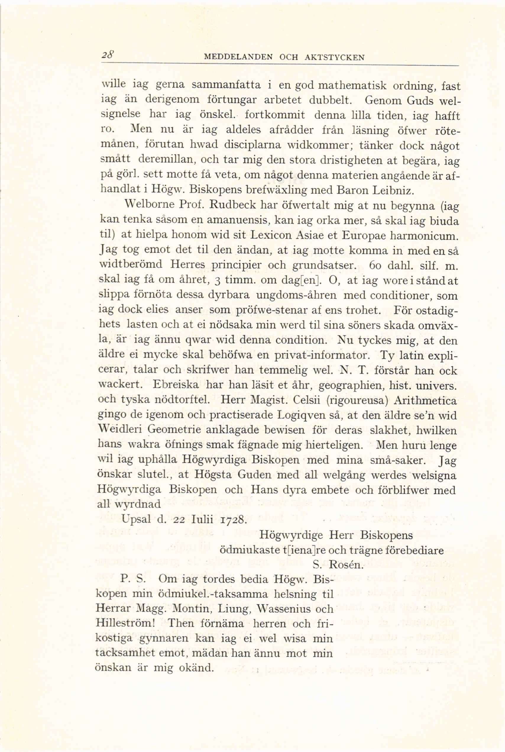 Welborne Prof. Rudbeck har öfwertalt mig at nu begynna (iag