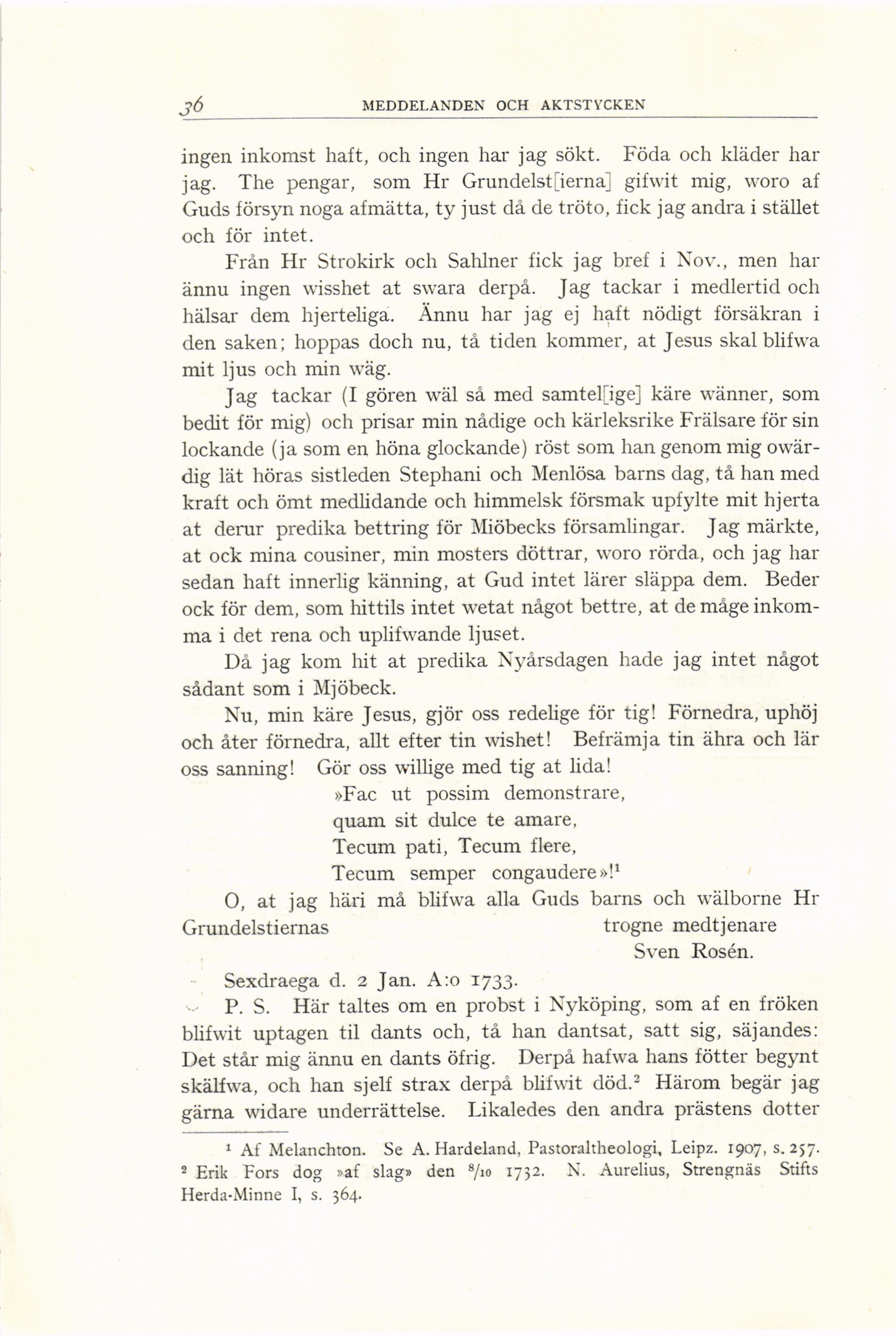 Sexdraega d. 2 Jan. A:o 1733.