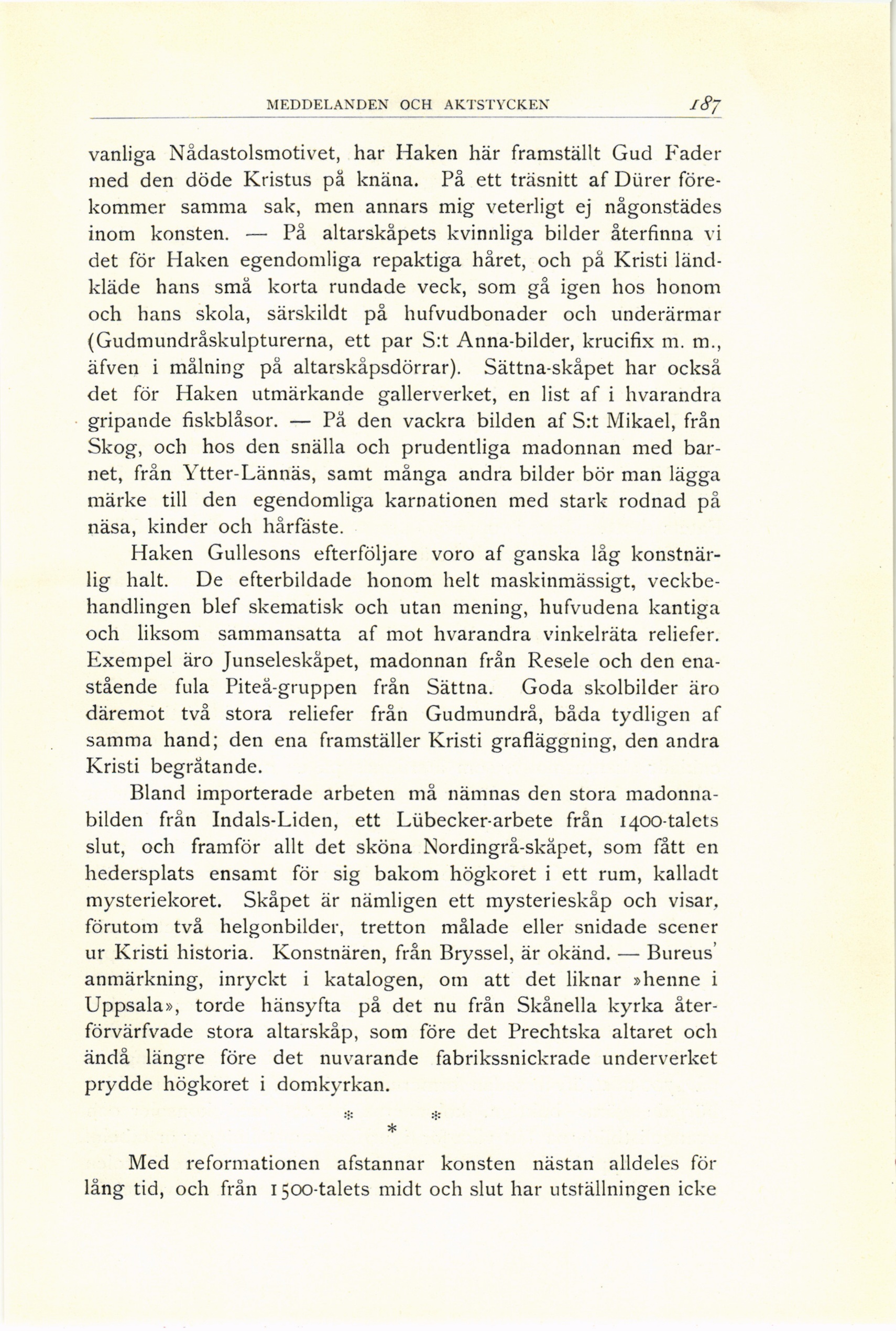 Exempel äro Junseleskåpet, madonnan från Resele och den