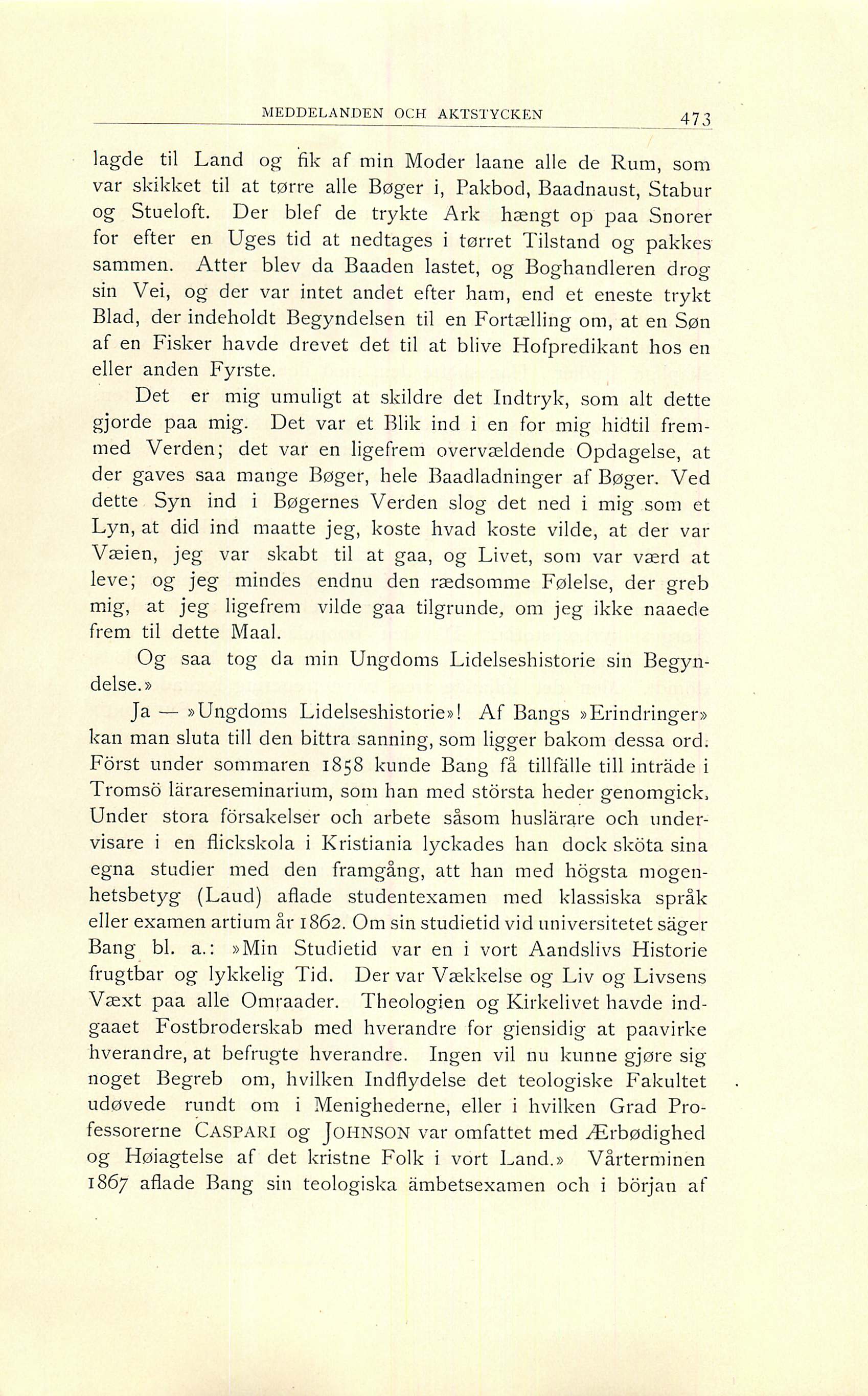Bang bl. a.: »Min Studietid var en i vort Aandslivs Historie