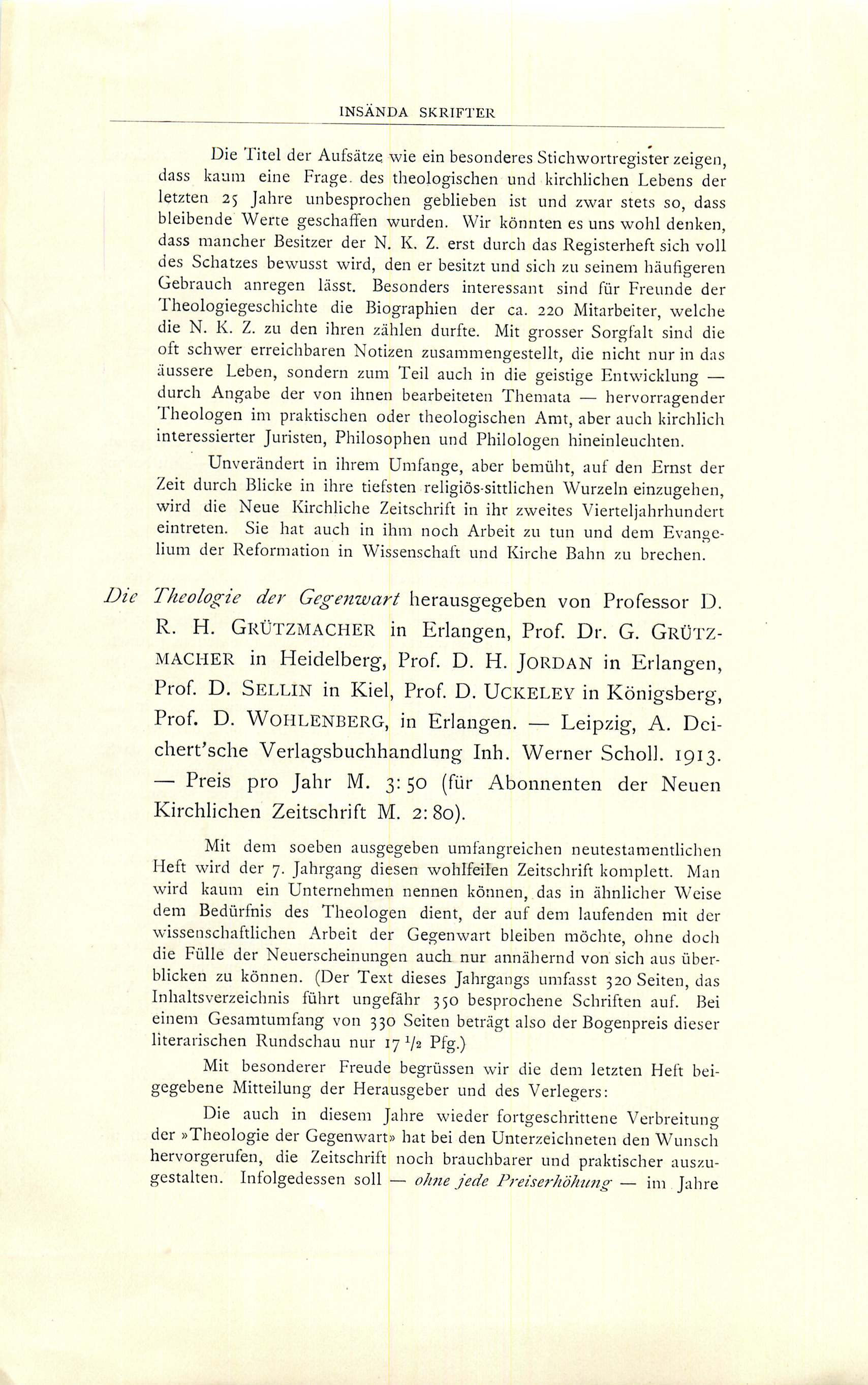 wird die Neue Kirchliche Zeitschrift in ihr zweites Vierteljahrhundert