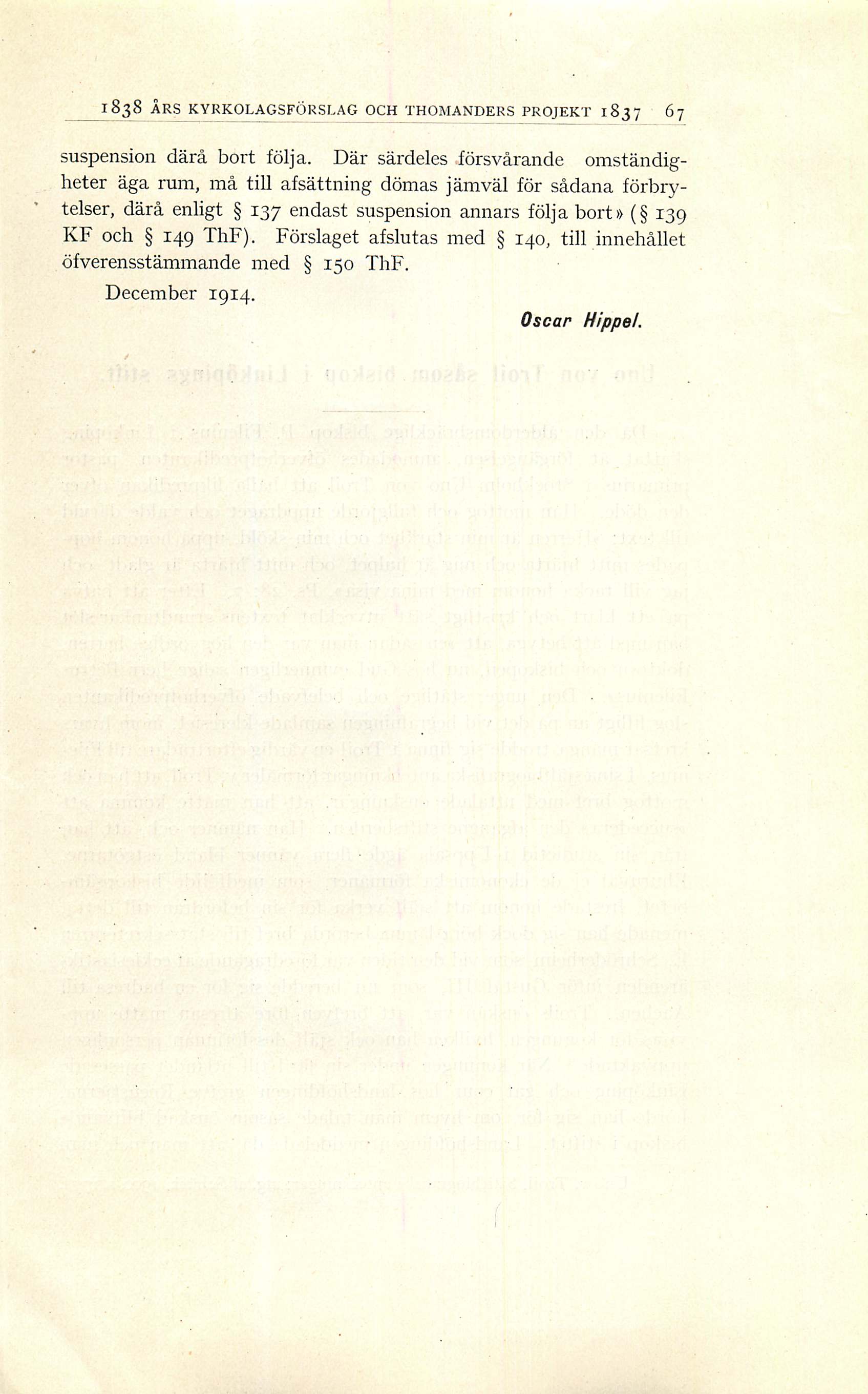Full resolution (JPEG) - On this page / på denna sida - Uppsatser och undersökningar - Oscar Hippel. Jämförelse mellan kyrkolagskommitténs förslag, utarbetadt vid höstsammanträdet 1838, och det Thomanderska kyrkolagsprojektet af 1837