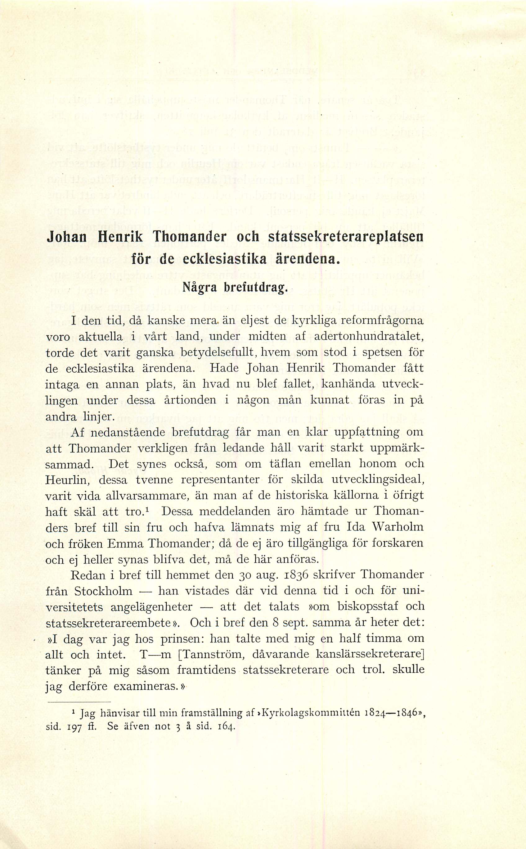 Full resolution (JPEG) - On this page / på denna sida - Meddelanden och aktstycken - Johan Henrik Thomander och statssekreterareplatsen för de ecklesiastika ärendena. Några brefutdrag. Medd. af Oscar Hippel