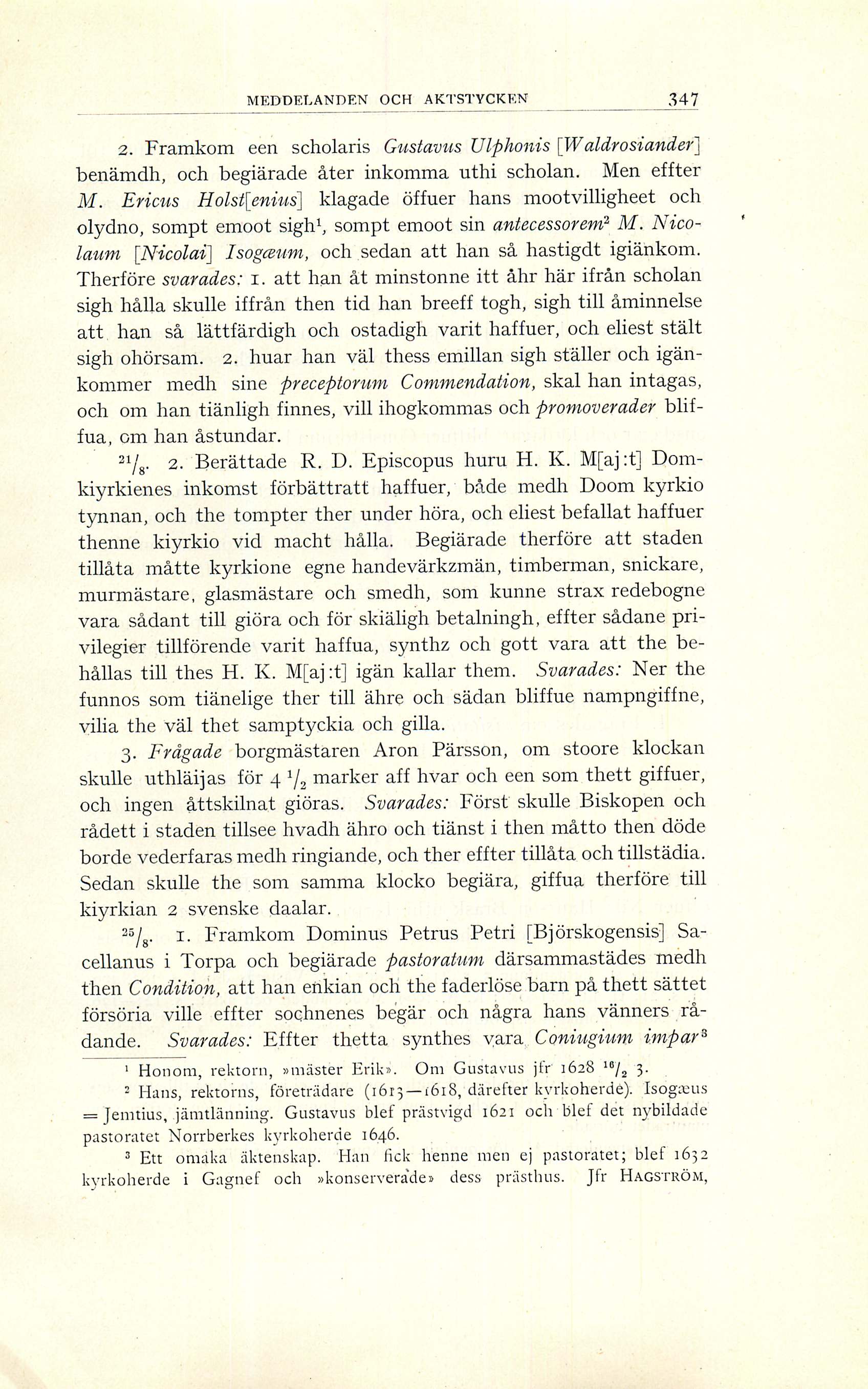 2. Framkom een scholaris Gustavus Ulphonis [Waldrosiander]