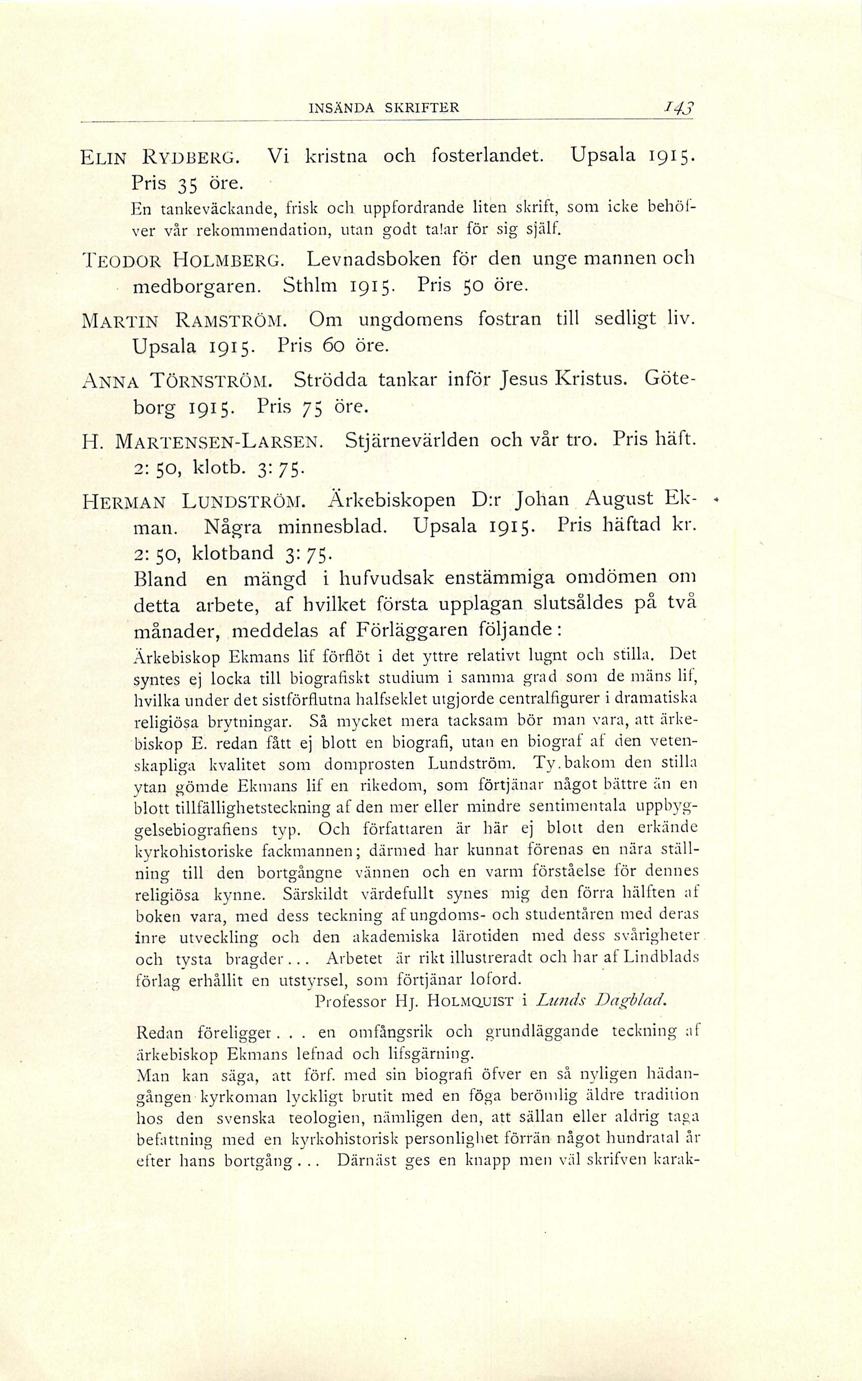 man. Några minnesblad. Upsala 1915. Pris häftad kr.