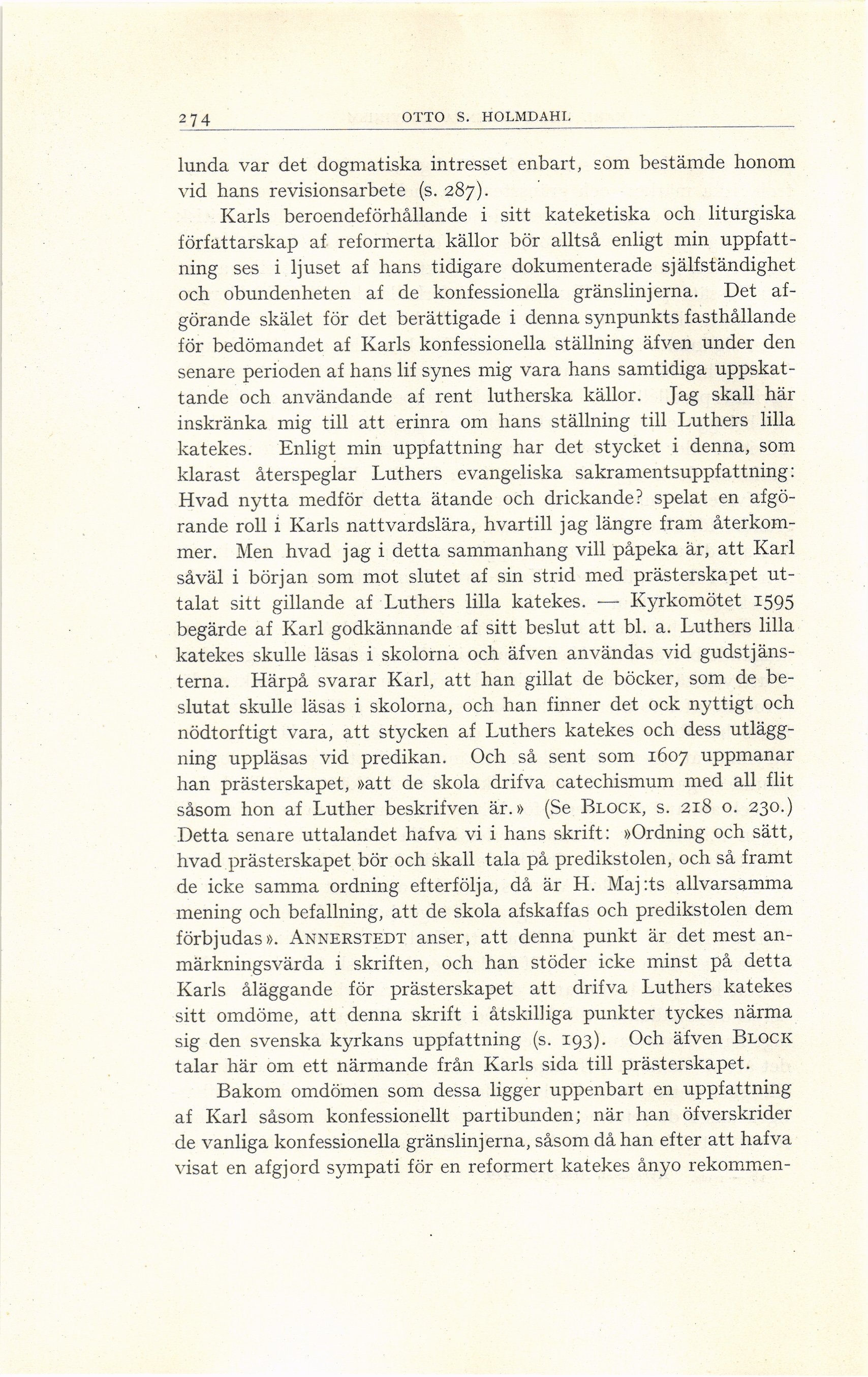 sig den svenska kyrkans uppfattning (s. 193). Och äfven Block