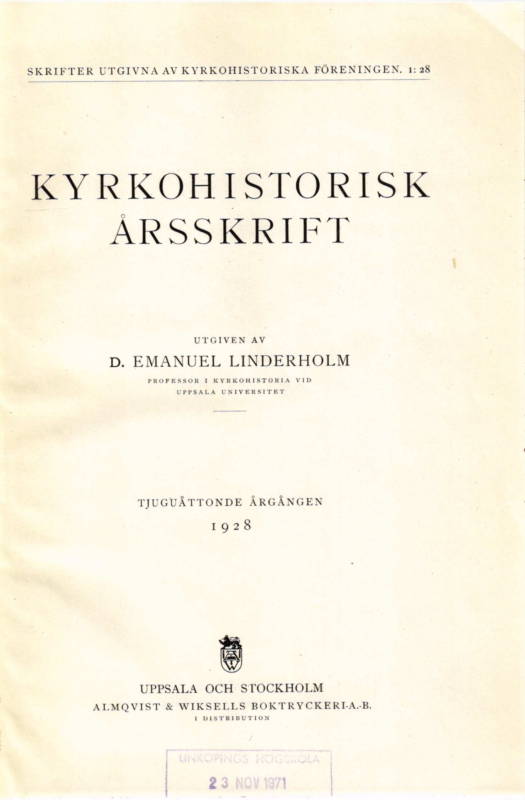 SKRIFTER UTGIVNA AV KYRKOHISTORISKA FÖRENINGEN. I:28