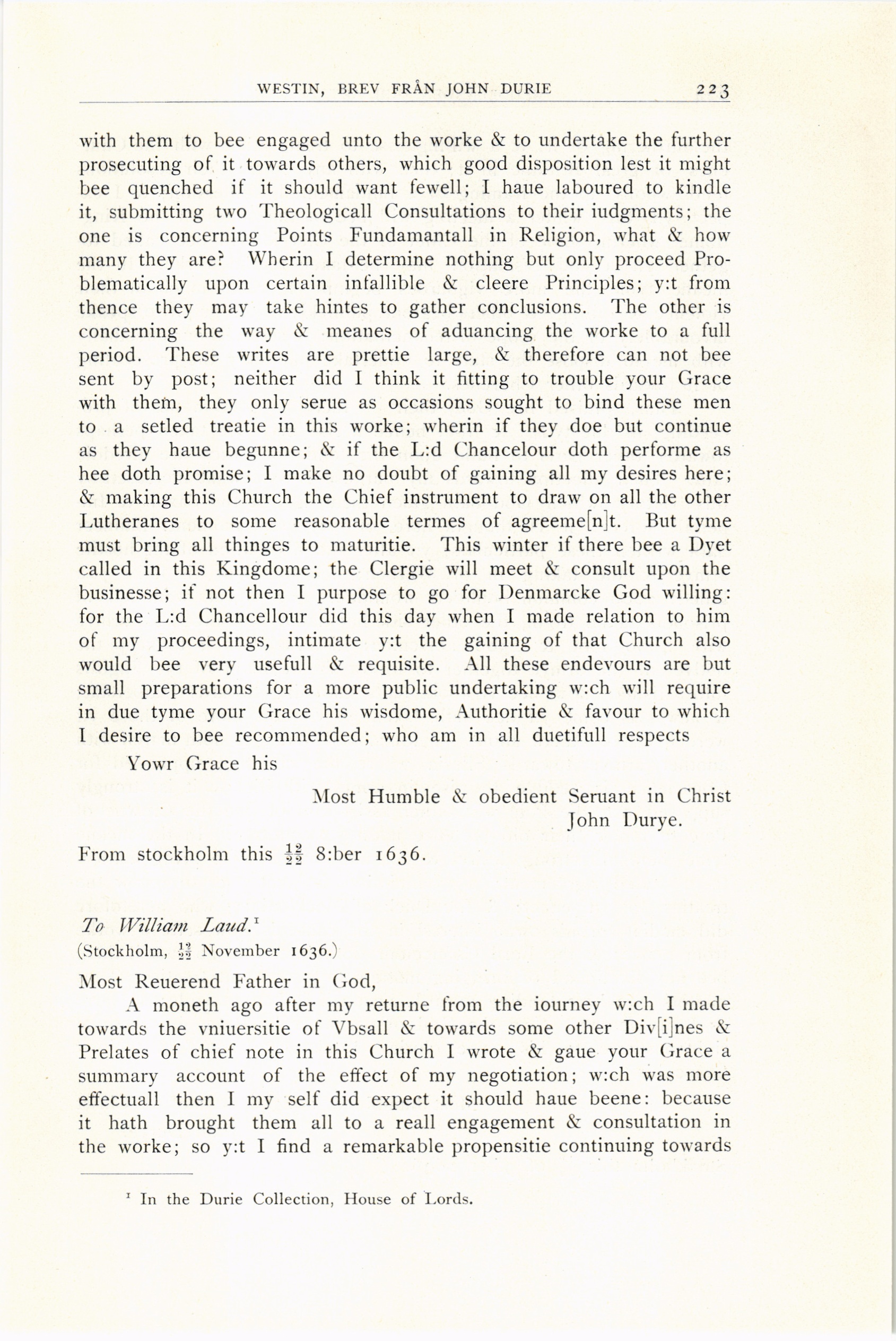 Full resolution (JPEG) - On this page / på denna sida - Meddelanden och aktstycken - Brev från John Durie åren 1636—1638 utg. av Gunnar Westin